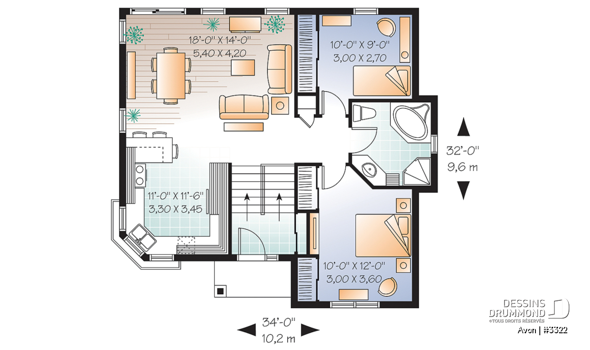 | Largeur | 34'0" | Profondeur | 32'0" |