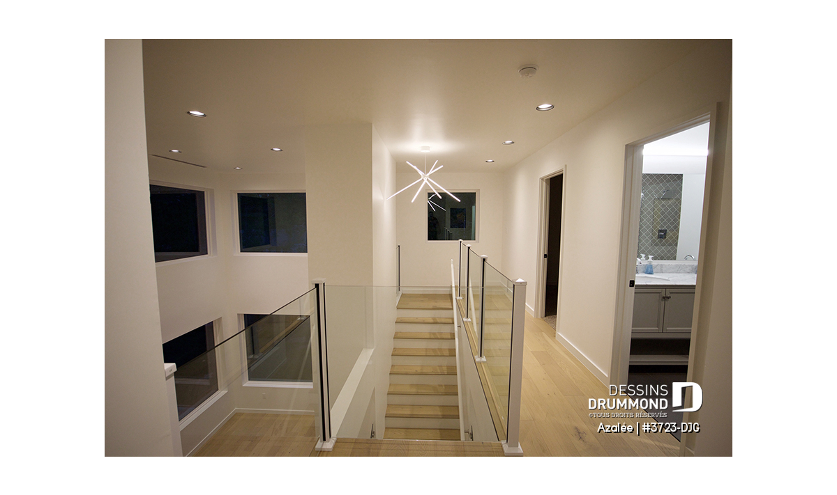 À l’étage, la chambre des maîtres offre un grand walk-in et un balcon privé, et s’ouvre sur une spacieuse salle de bain familiale avec bain, douche séparée et vanité double. Les chambres secondaires sont bien dimensionnées, et une mezzanine surplombant la salle de séjour crée un lien visuel et familial entre les niveaux.