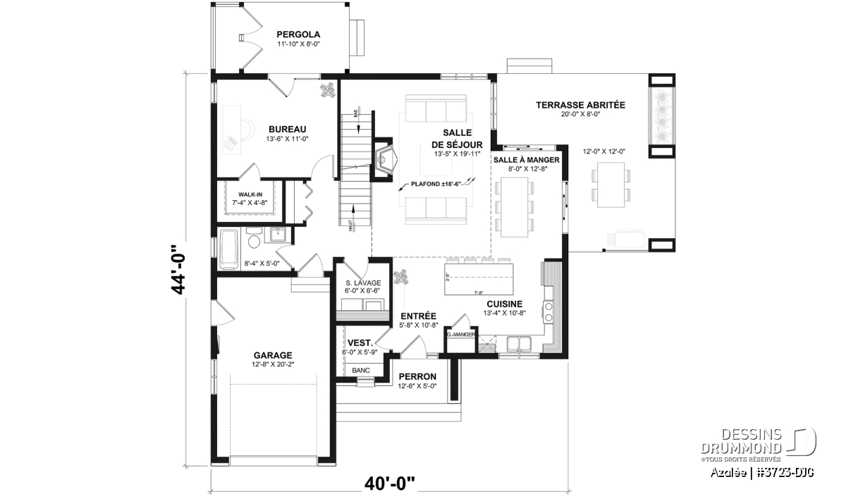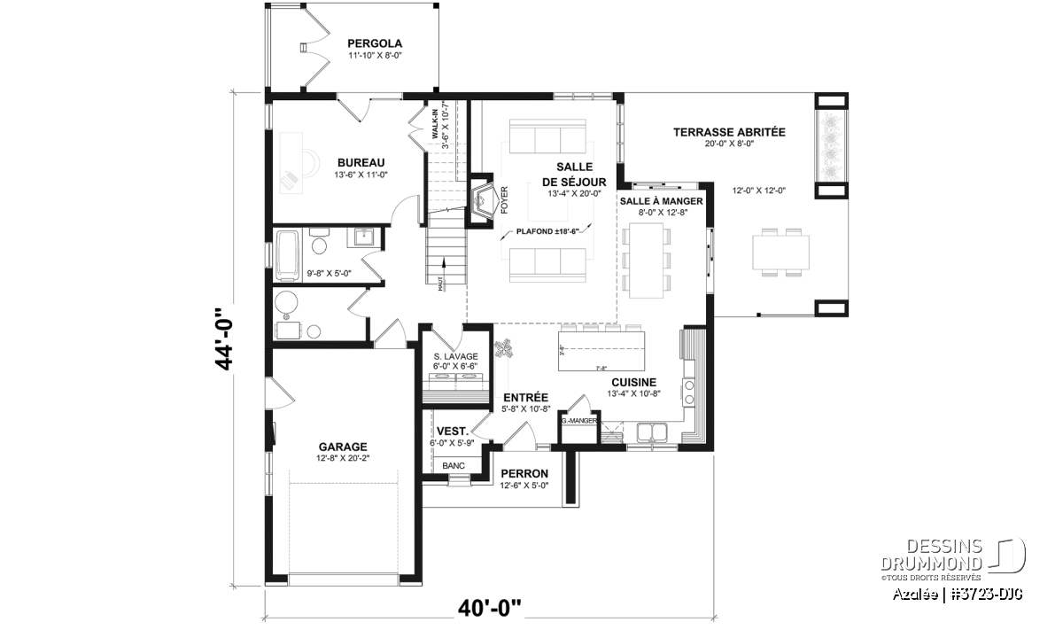 La *fondation incluse au plan est une dalle flottante. Plusieurs autres types de fondation sont disponibles pour ce plan et visible dans la liste des prix.
