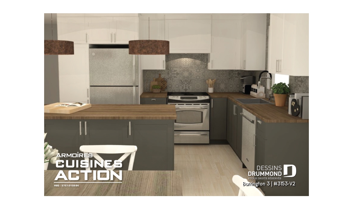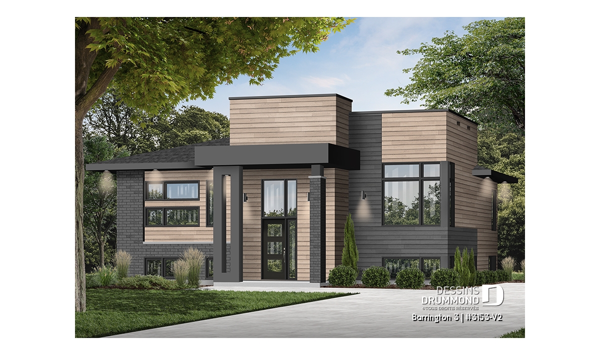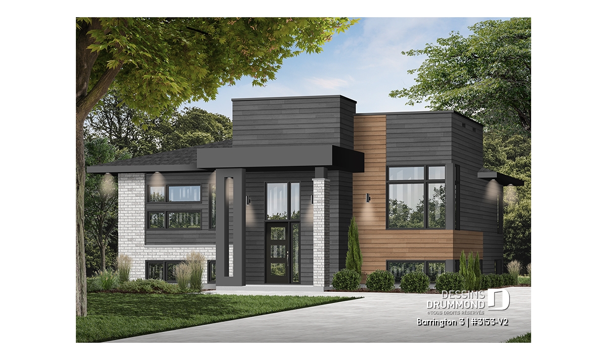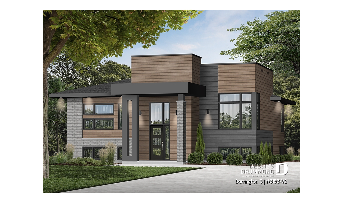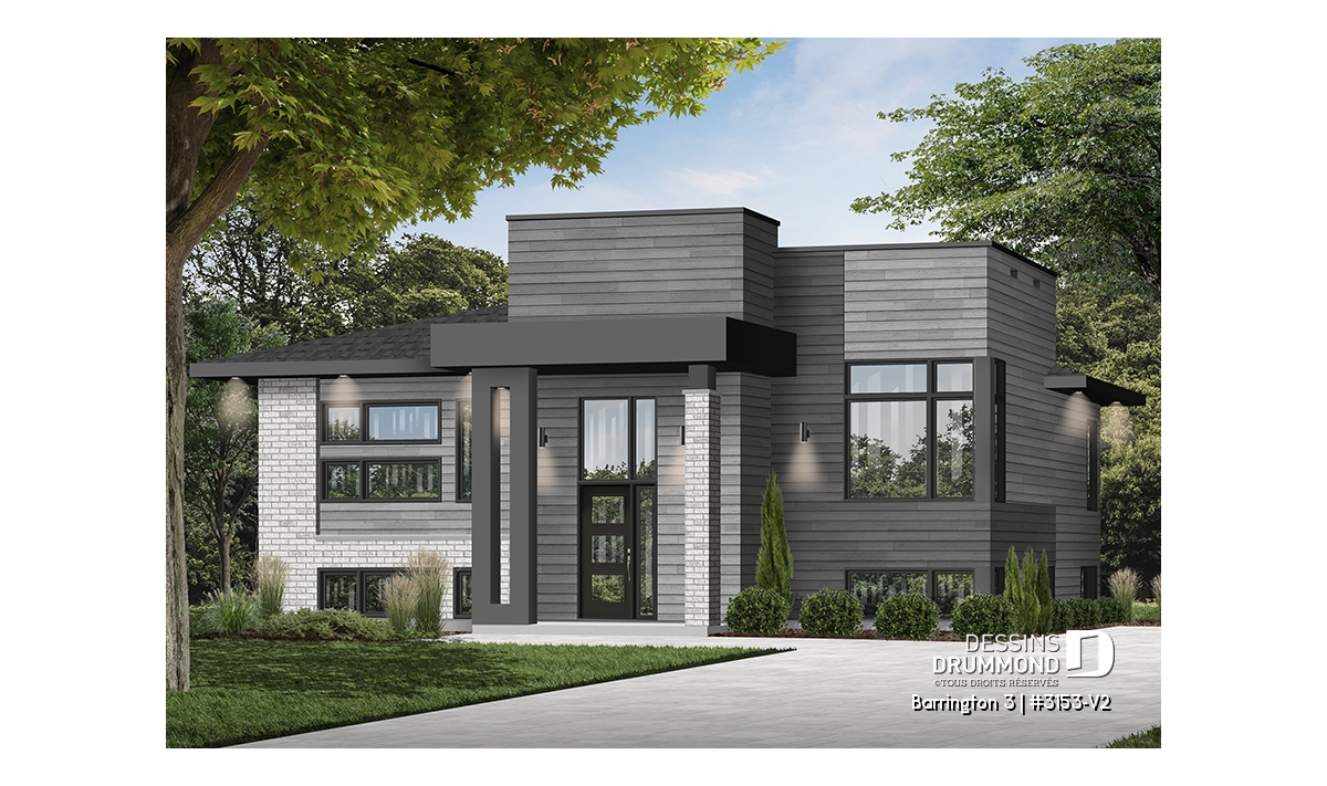 Le plan BARRINGTON 3 (plan #3153-V2) séduit d’emblée par son design cubique moderne et son aménagement pratique, parfait pour les familles d’aujourd’hui. Avec ses 1 094 pi² entièrement aménagés au rez-de-chaussée, et un sous-sol de même superficie à personnaliser selon vos besoins, cette maison vous offre tout l’espace nécessaire pour évoluer à votre rythme.