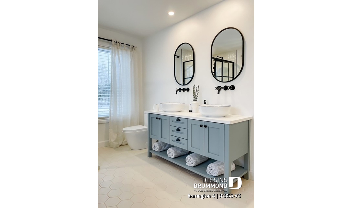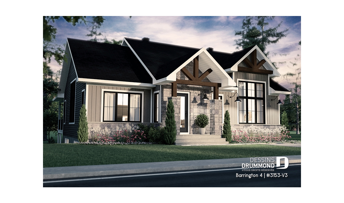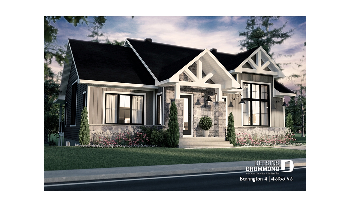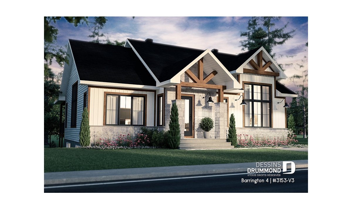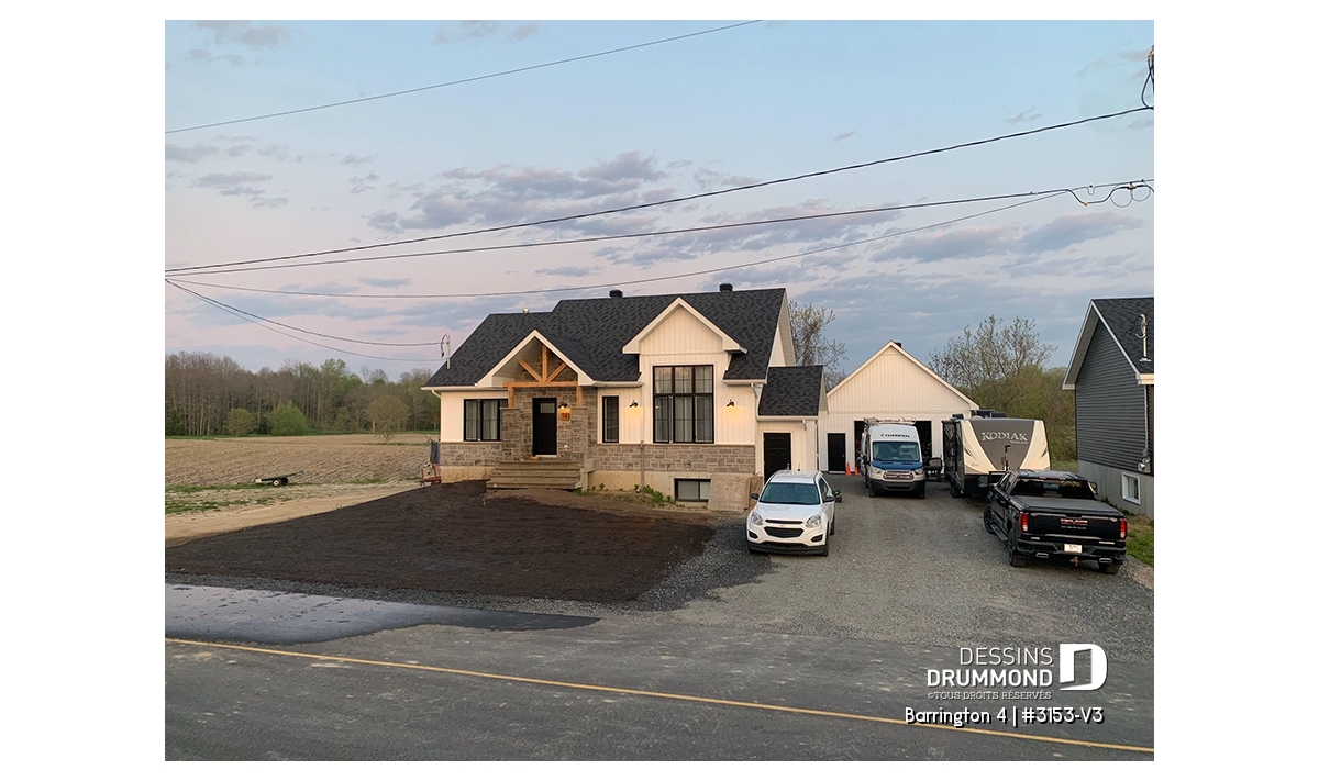Ce modèle est offert en plusieurs variantes : consultez les plans #3153 et #3153-V1 si vous recherchez une version avec garage ou un format plus compact.