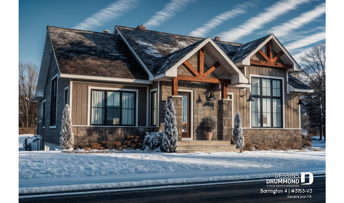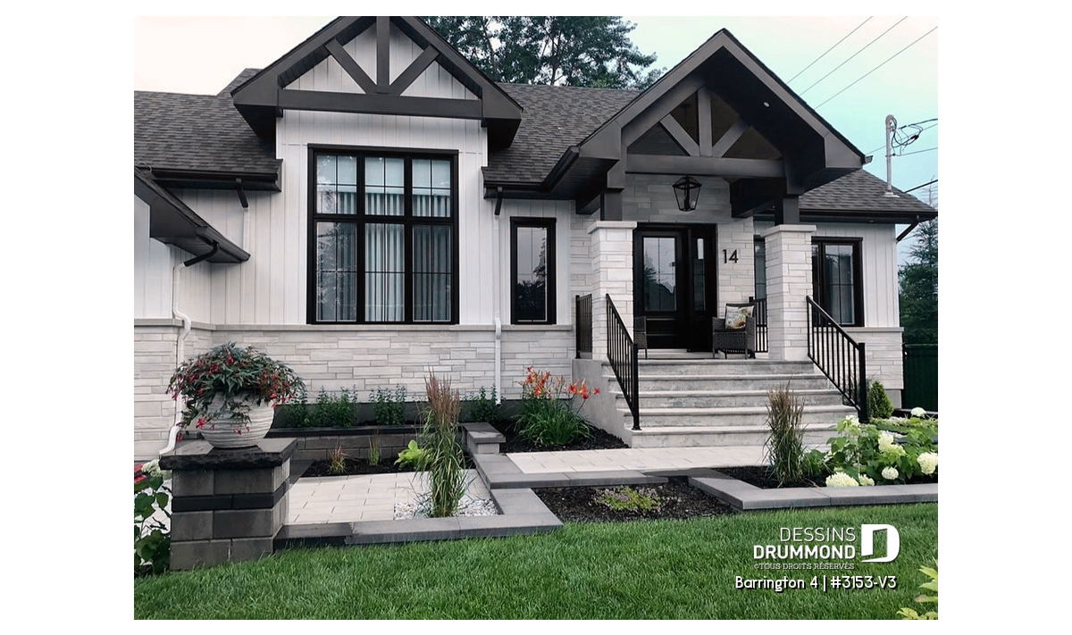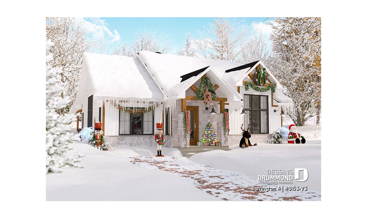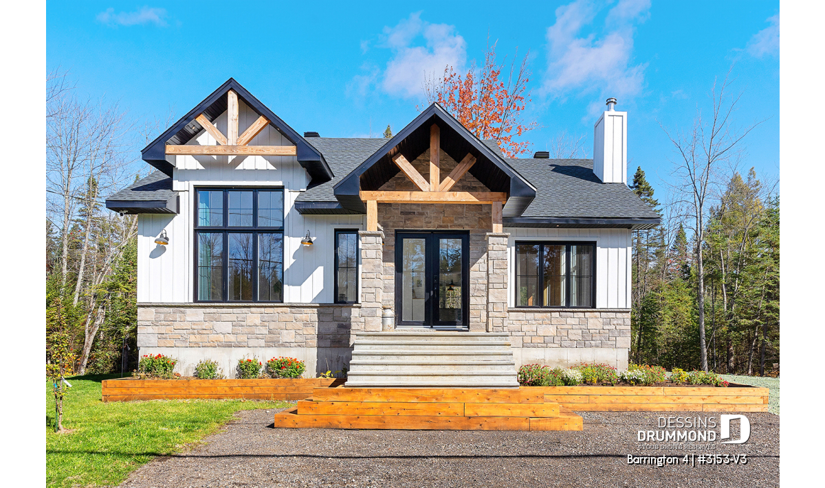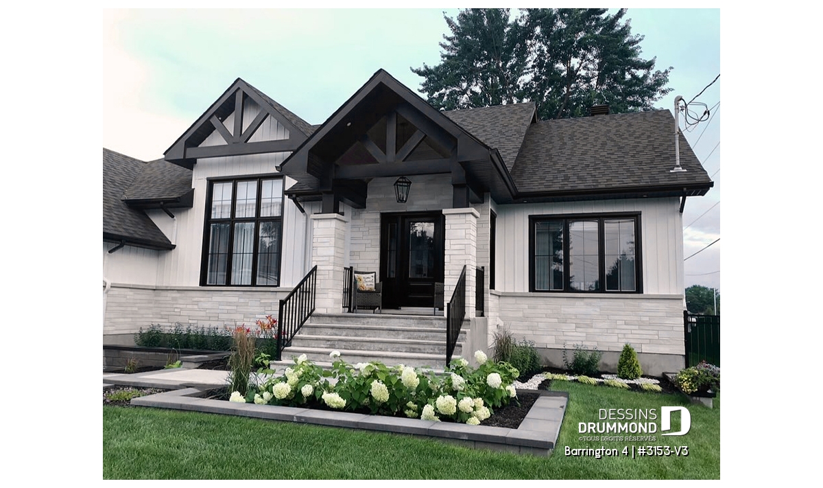 Ce modèle est offert en plusieurs variantes : consultez les plans #3153 et #3153-V1 si vous recherchez une version avec garage ou un format plus compact.