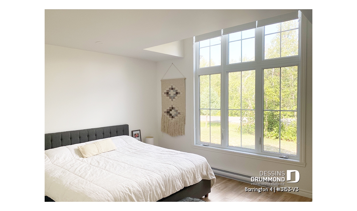 La chambre principale, à l’écart des aires communes, offre calme et intimité, avec une belle fenestration et une proximité idéale avec la seconde chambre, parfaite pour un jeune enfant ou une pouponnière.