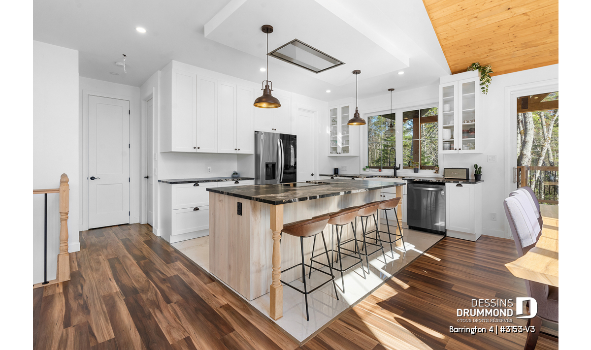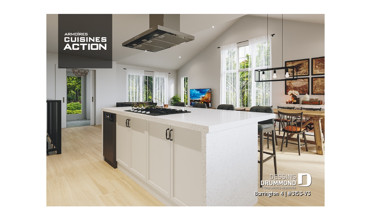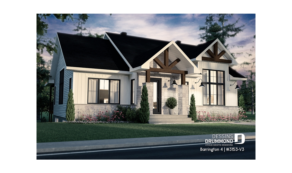 Le plan BARRINGTON 4 (plan #3153-V3) vous propose un espace de vie polyvalent et généreux avec 1 326 pi² aménagés au rez-de-chaussée, et la possibilité d’aménager le sous-sol (optionnel $) pour un total impressionnant de 2 652 pi². Une solution idéale pour les familles en pleine croissance qui souhaitent espace, confort et flexibilité.