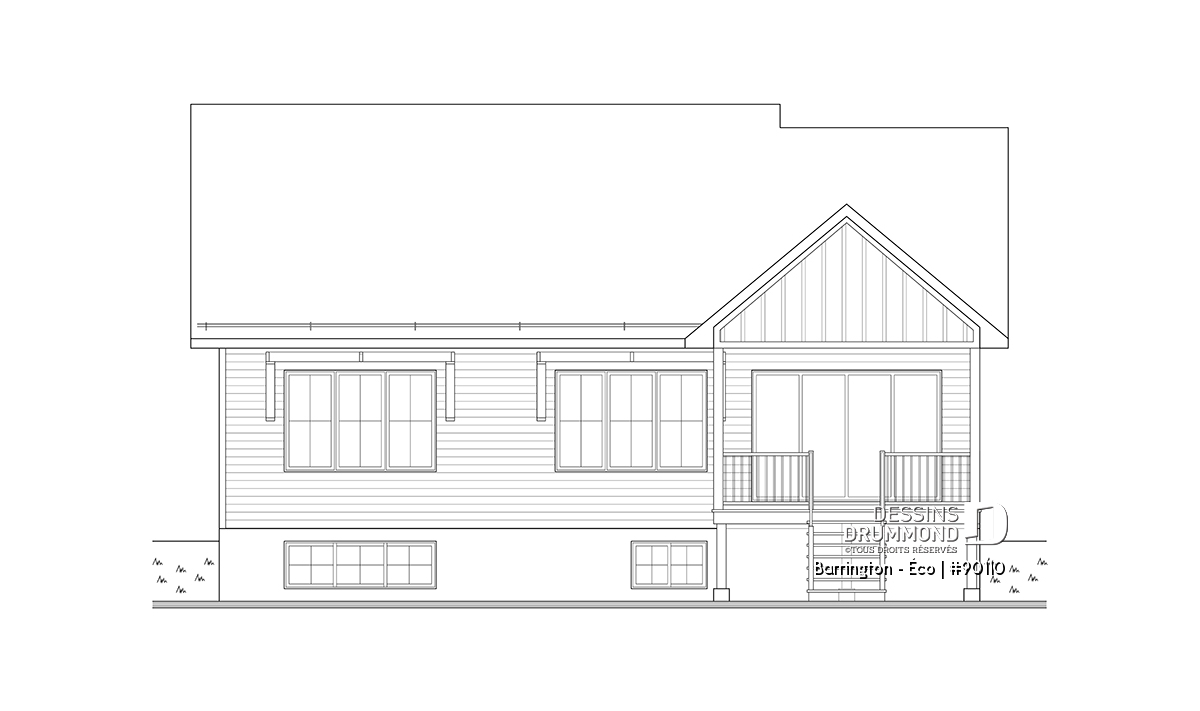 Inspirée du modèle Barrington 4 (plan #3153-V3), la maison Barrington - Éco est une version éco-responsable et revisitée de cette première. La fenestration a été revue pour en faire une maison solaire passive.
