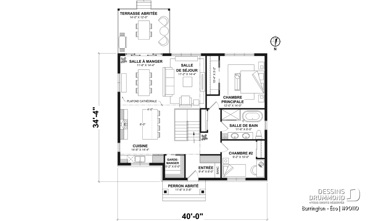 Largeur 40'0" Profondeur 34'4"