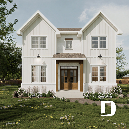 Cette maison de style Farmhouse séduit par son allure à la fois classique et actuelle. Son revêtement extérieur élégant lui confère une beauté intemporelle, tandis que ses lignes simples et bien équilibrées rappellent le charme des maisons de campagne modernes. Chaque détail a été pensé pour créer un lieu de vie à la fois accueillant, lumineux et fonctionnel.
