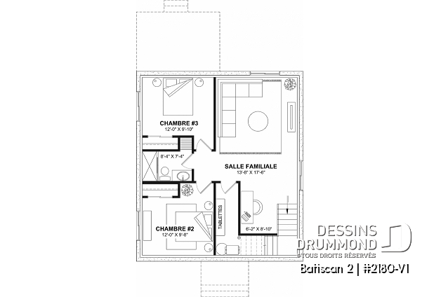 Tous les plans de Dessins Drummond ne peuvent être modifiés que par Dessins Drummond et ses agences reconnues; si vous faites modifier votre plan par une autre entreprise ou personne que Dessins Drummond, assurez-vous que cette entreprise ou personne détient une licence pour la modification de ce plan sinon, vous êtes passible de poursuite judiciaire au même titre que l'entreprise ou la personne avec qui vous avez fait affaires pour la modification ou la reproduction du plan.