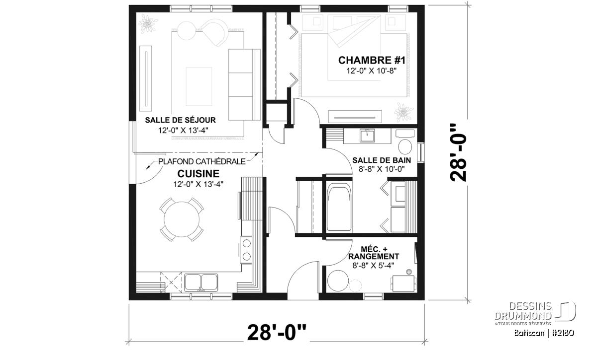 Largeur 28'0" Profondeur 28'0"