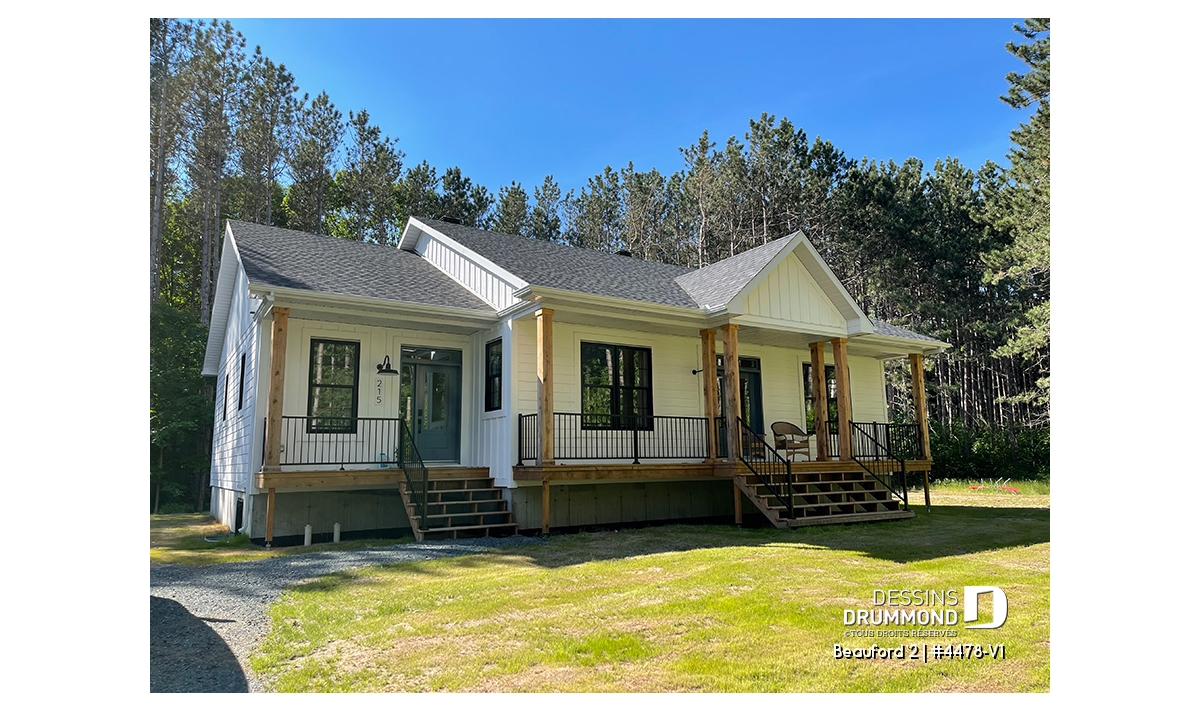 Ce splendide plan de maison de plain-pied, inspiré du style Farmhouse ou fermette américaine, propose une superficie habitable de 1604 pi² où confort et fonctionnalité se rencontrent harmonieusement. Son allure intemporelle, à la fois élégante et chaleureuse, saura séduire les amateurs de maisons au charme champêtre revisité dans un esprit moderne.