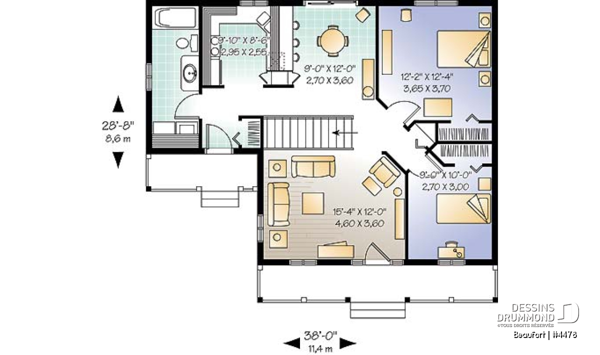 | Largeur | 38'0" | Profondeur | 28'8" |