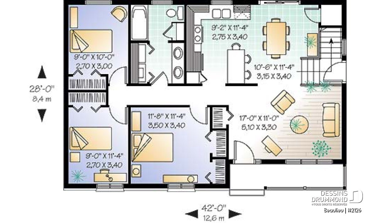 | Largeur | 42'0" | Profondeur | 28'0" |