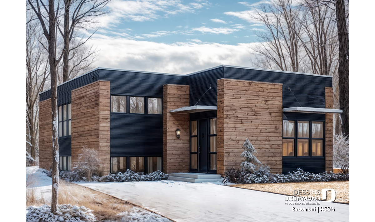 Ce plan de maison moderne de style cubique se distingue par son architecture actuelle, ses lignes épurées et son entrée split qui optimise la gestion des niveaux. Dès l’arrivée, le palier de l’entrée principale impressionne avec son plafond de 10 pieds, créant une sensation d’espace remarquable. Cet espace inclut également un bureau ou une troisième chambre, offrant une grande flexibilité selon les besoins de la famille.