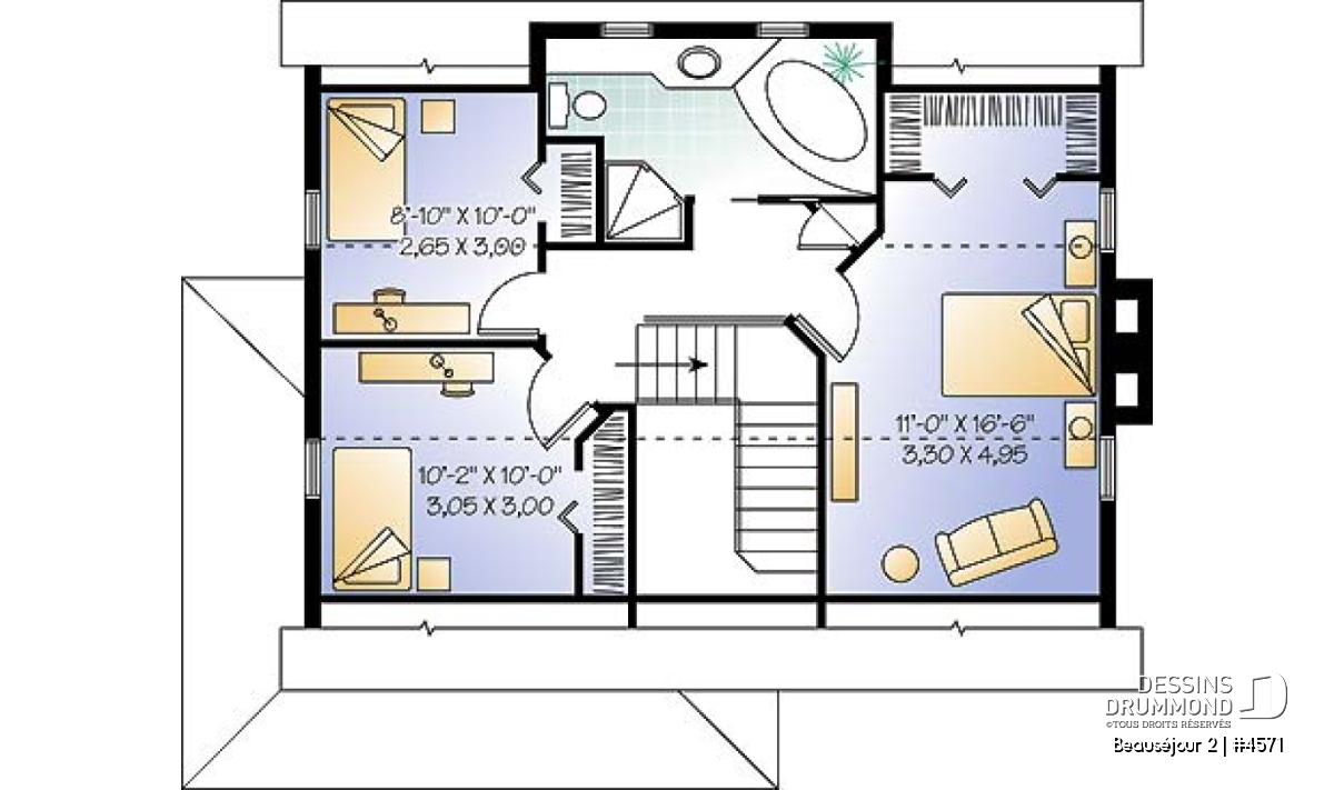 Galerie abritée sur 2 faces, rangements intégrés, jeux de moulures au plafond, puit de lumière. Foyer et cheminée double en maçonnerie. La cheminée est standard avec un conduit pré-fab à l'intérieur.