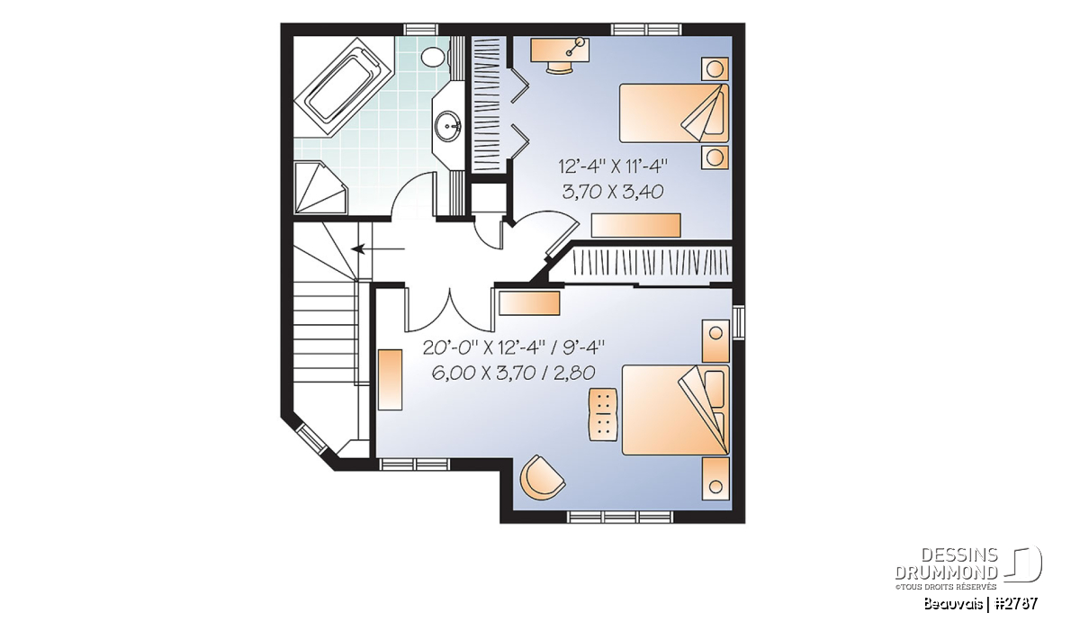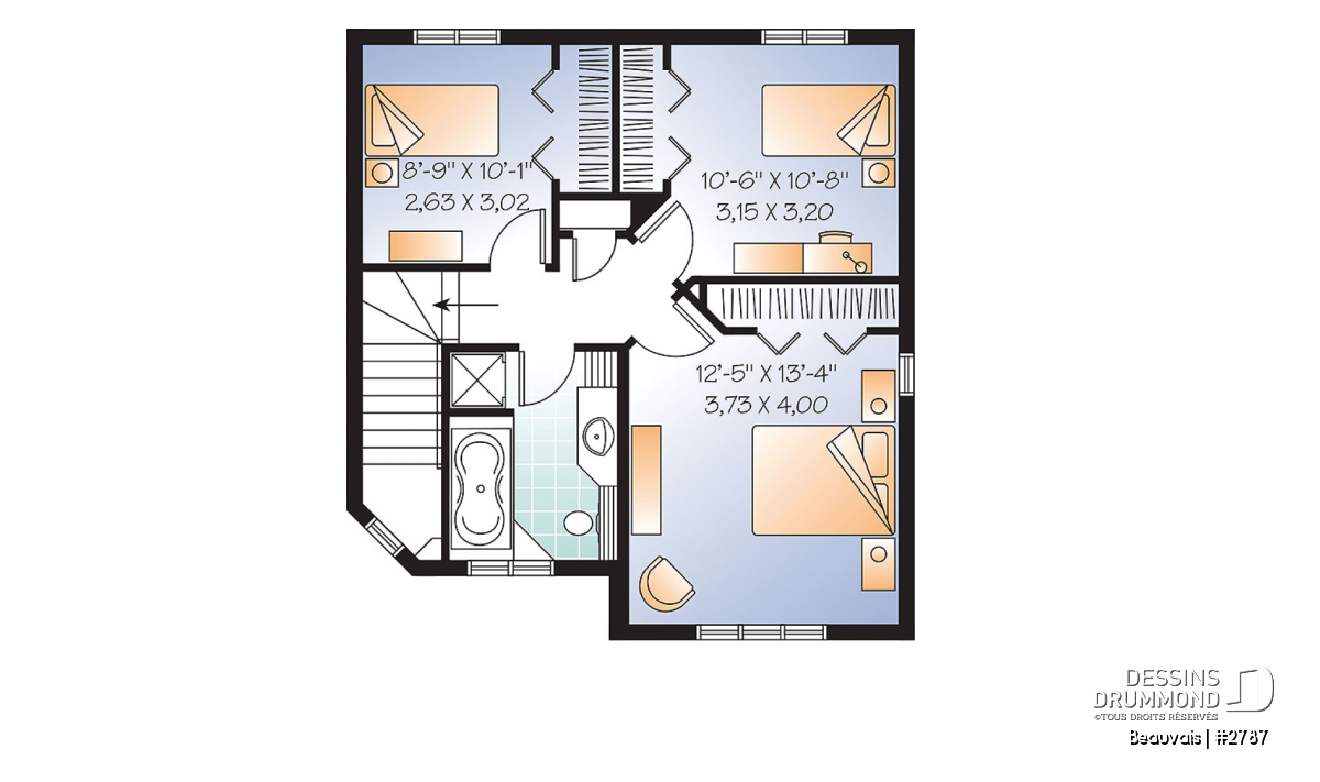 Étage option 2 - Plan maison abordable, 3 chambres, salle de lavage au r-d-c, 1.5 salleS de bain - Beauvais