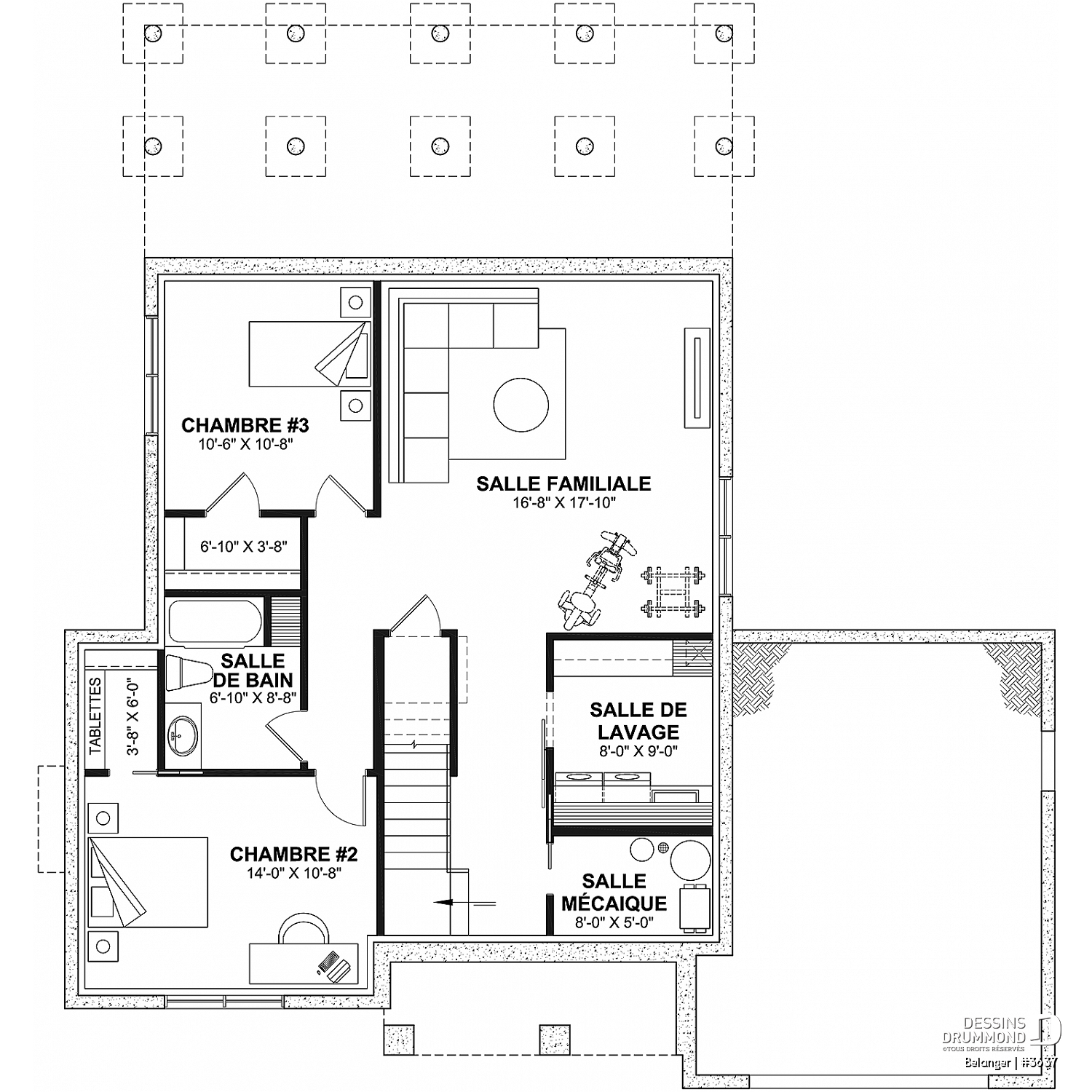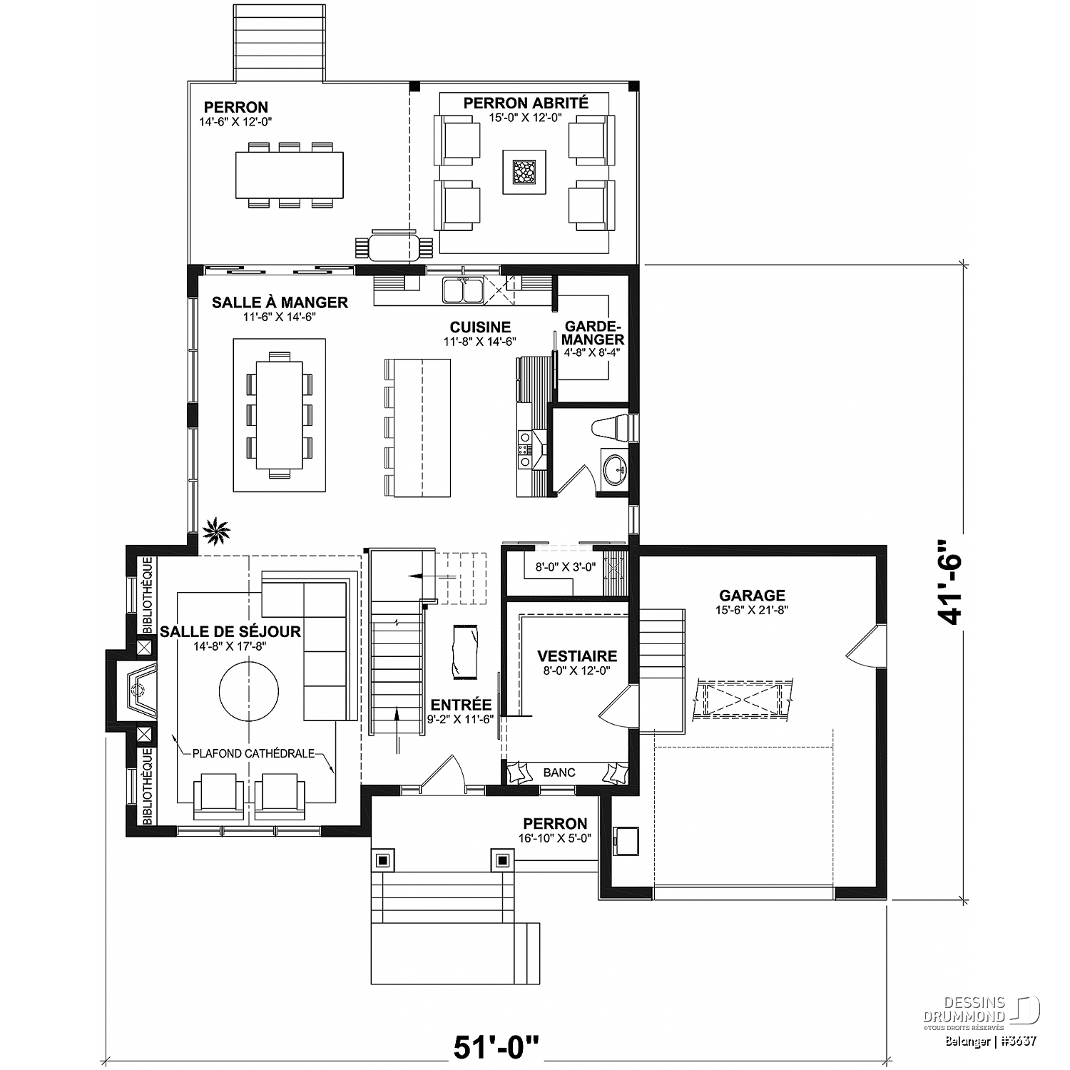 Tous les plans de Dessins Drummond ne peuvent être modifiés que par Dessins Drummond et ses agences reconnues; si vous faites modifier votre plan par une autre entreprise ou personne que Dessins Drummond, assurez-vous que cette entreprise ou personne détient une licence pour la modification de ce plan sinon, vous êtes passible de poursuite judiciaire au même titre que l'entreprise ou la personne avec qui vous avez fait affaires pour la modification ou la reproduction du plan.