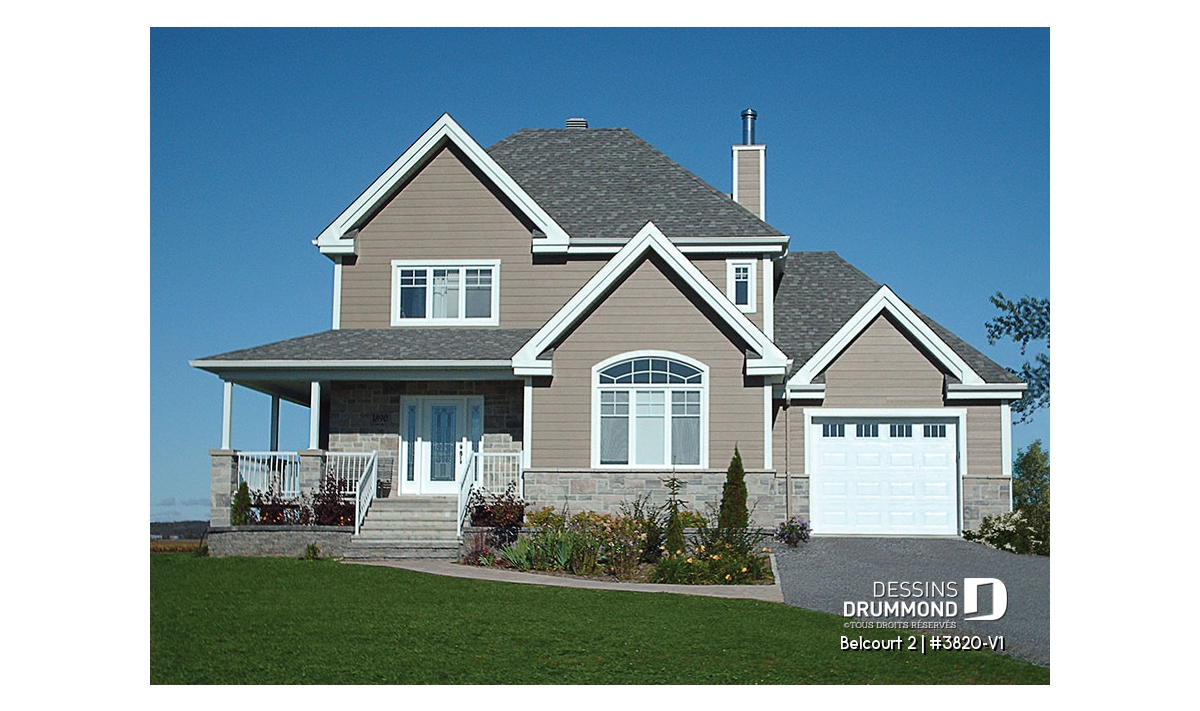 Déjà très populaire, le cottage 3820, que vous êtes en mesure d’apprécier en photos extérieures et intérieures et en différentes suggestions couleur, le deviendra encore possiblement davantage avec ce modèle 3820-V1 pour lequel un agrandissement de la maison et un agrandissement significatif du garage se veulent un ajout au confort de celle-ci et un véritable atout quand on s’attarde au format du nouveau garage.