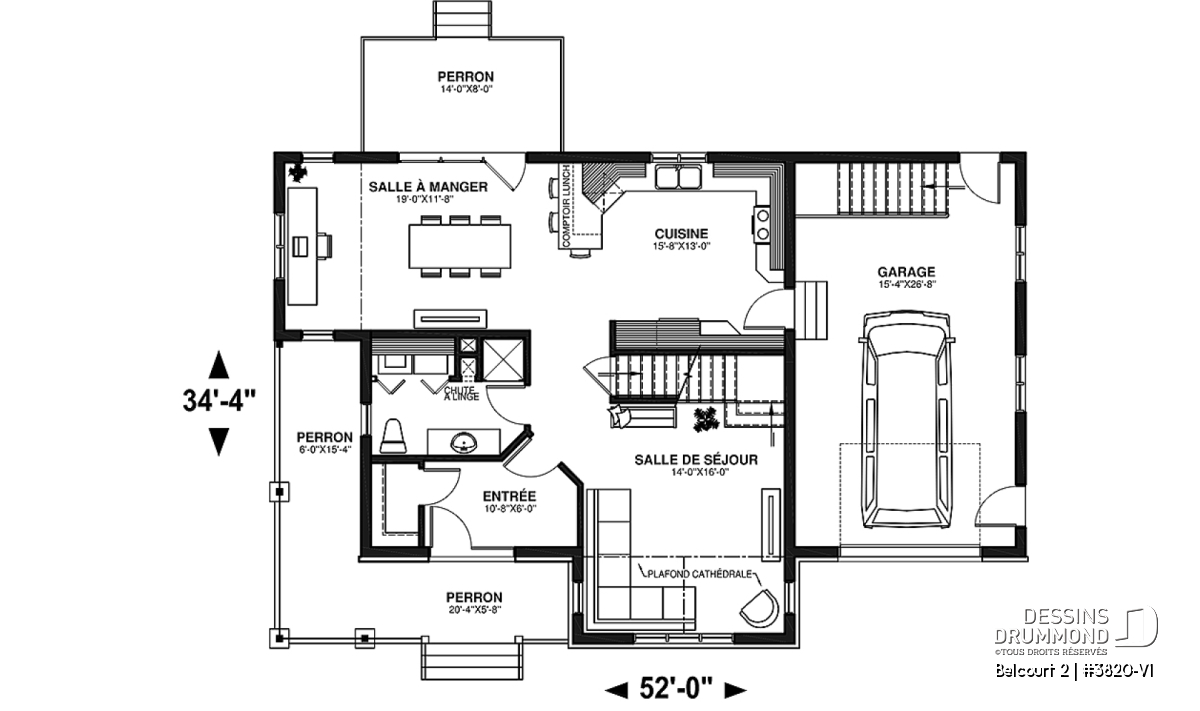 Accès au sous-sol du garage, Bain et douche séparés, Walk-in ch. maîtres, Salle de lavage au rez-de-chaussée, Comptoir-lunch, Vestiaire, Coin bureau, Plafond cathédrale