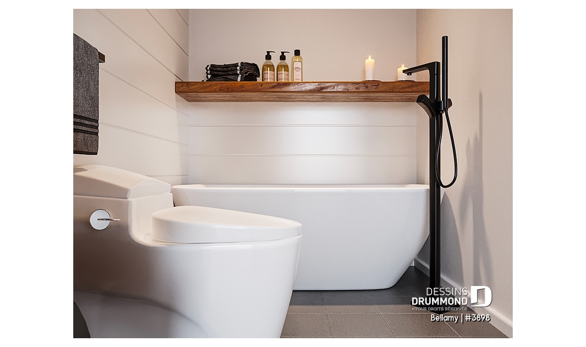 Bain autoportant au style à la fois intemporel et polyvalent, caractérisé par des lignes courbes d'une élégance épurée | Fabriqué au Québec