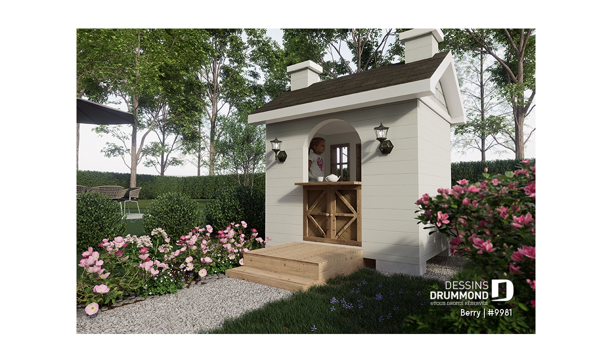 La fenêtre à l'arrière apporte une touche ludique et charmante: elle peut se transformer en comptoir de marchande ou de livraison expressément pour les enfants ou même en petit théâtre selon leur imagination ! En ajoutant quelques coussins moelleux ou un banc petit format et des accessoire de jeu supplémentaires vous créerez un refuge miniature parfait pour des histoires inventées et des moments de rire partagé.