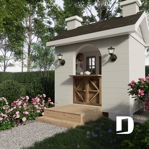 Plan gratuit de cabane pour enfant, à construire soi-même - Maisonnette de style farmhouse