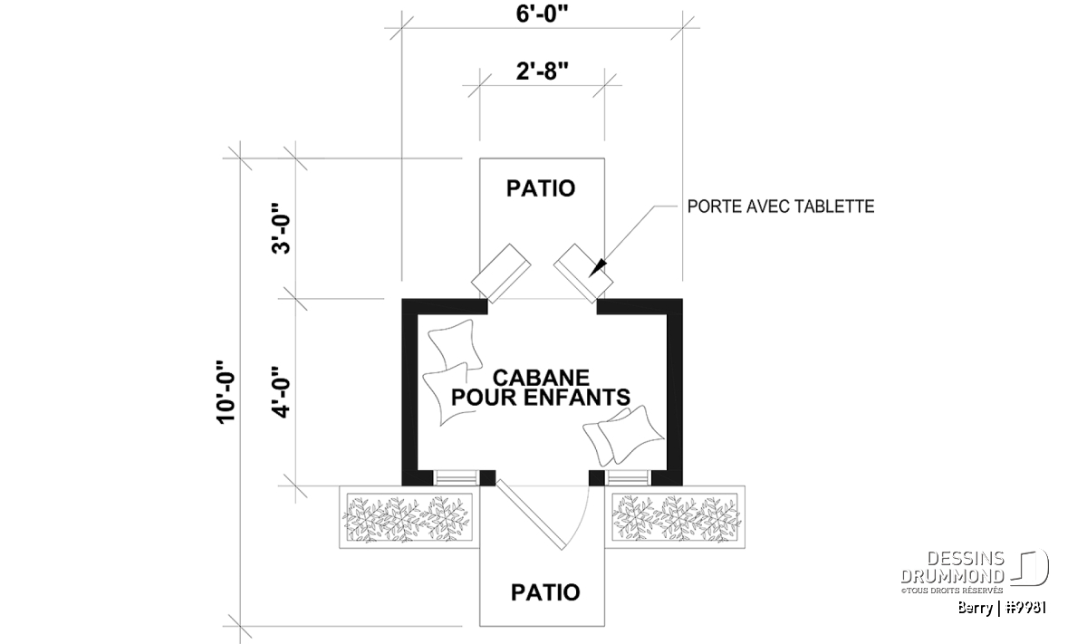Plan de petite maisonnette pour enfant 6'-0" x 4'-0", excluant les perrons