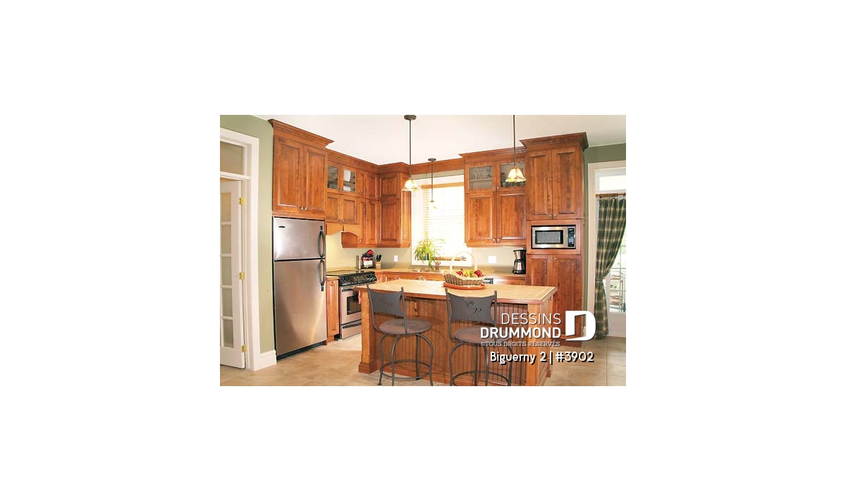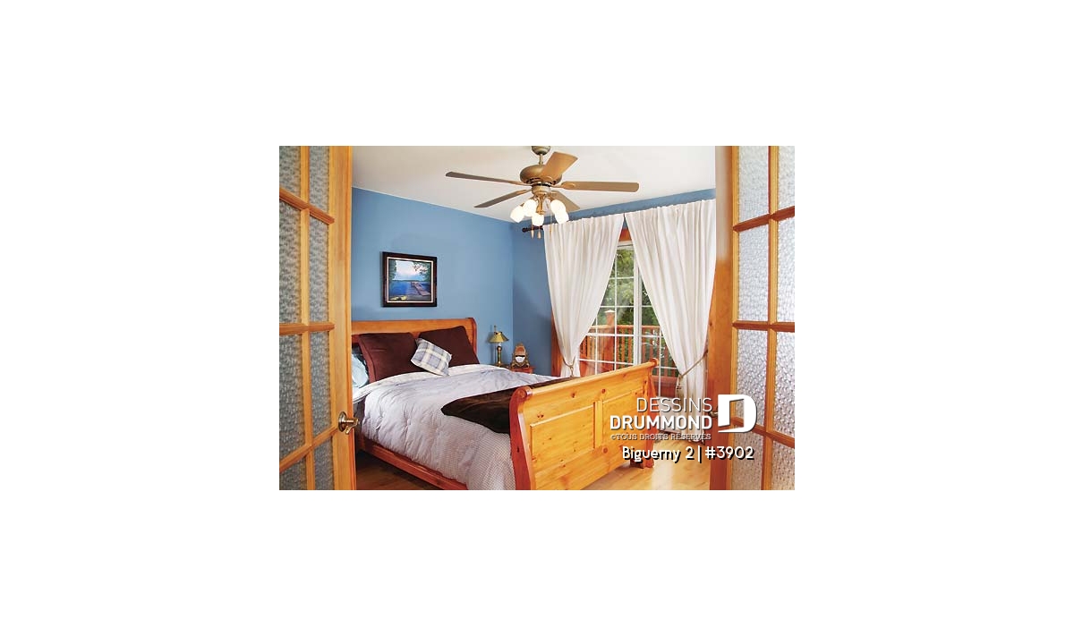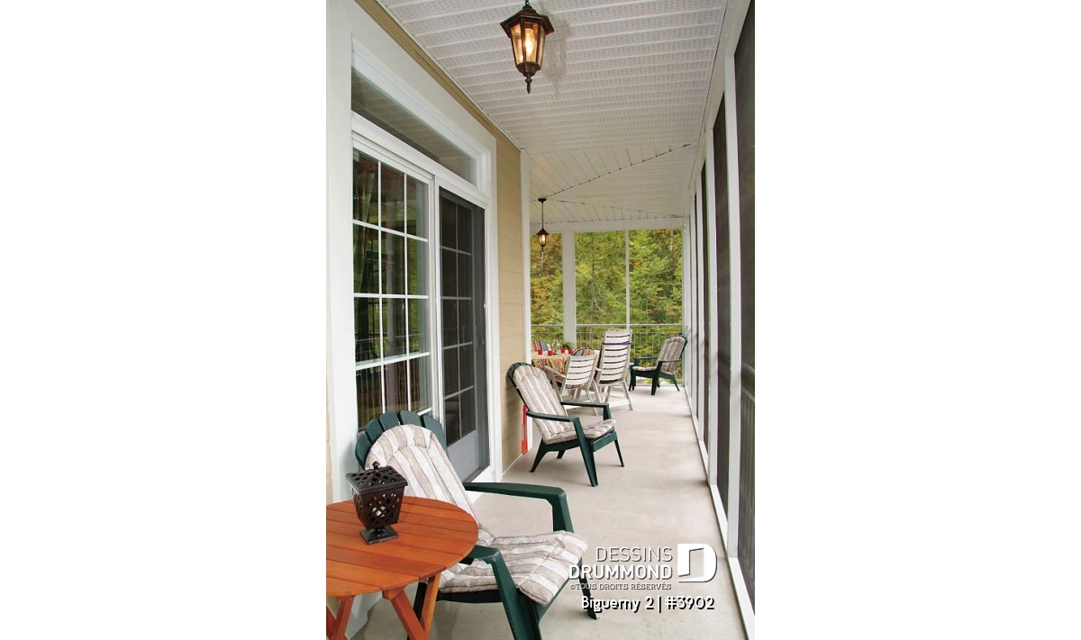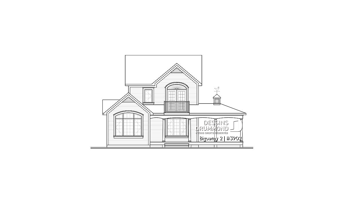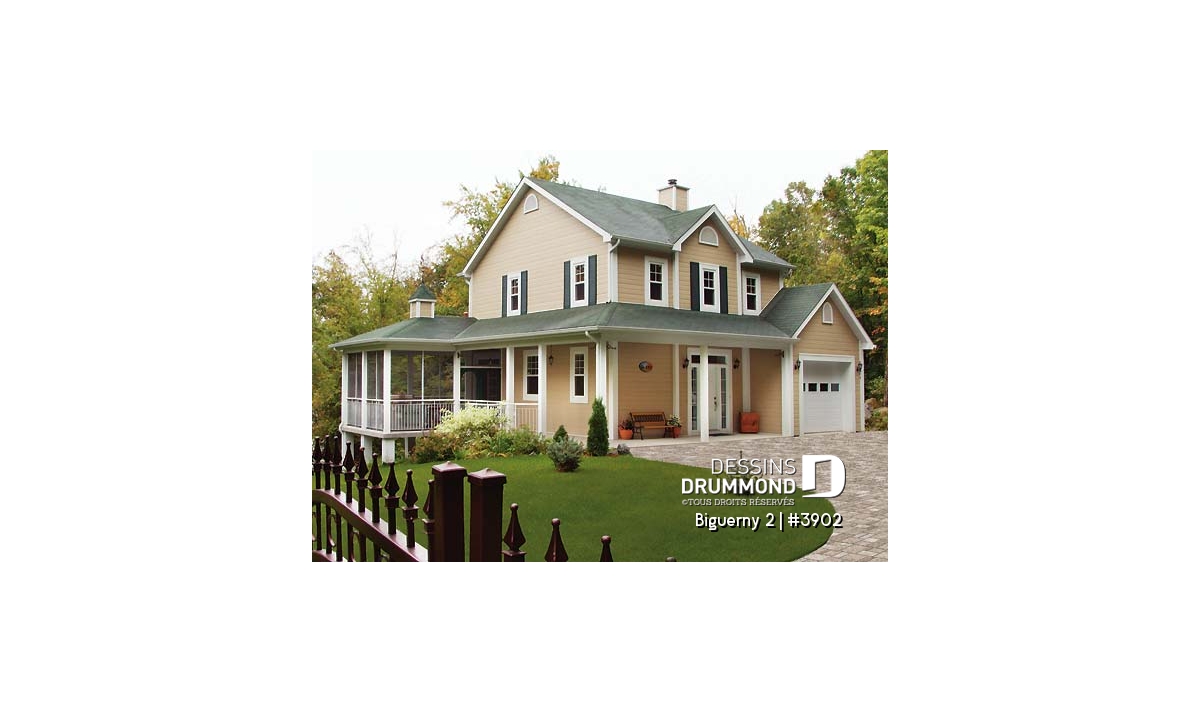 Avec seulement 28 pieds de largeur en façade principale, excluant les galeries, on peut qualifier ce cottage d'original à double vocation car il conjugue l’aspect urbain, avec son garage bien intégré, à une approche champêtre pour site panoramique avec ses galeries et son aménagement intérieur orienté sur l’arrière. Le modèle 2937 dont il est issu se veut d’ailleurs la source de quelques autres modèles similaires dont la popularité ne cesse de croître.