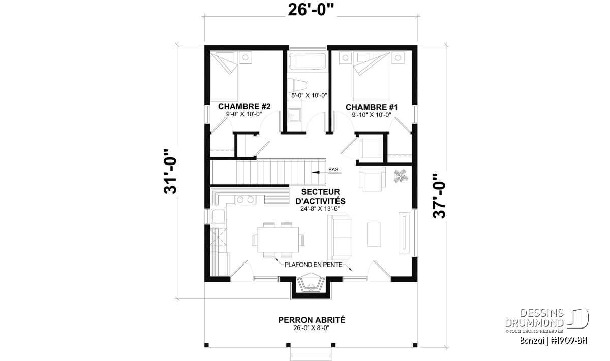 *Si vous souhaitez acheter la maison contenant un plan du sous-sol aménageable (non fini), tel que présenté sur la page de ce plan en Option #1, veuillez sélectionner cette option dans le panier d'achat, dans la section "Sélectionner votre fondation". Si vous ne sélectionnez pas cette option, vous recevrez la fondation en dalle monolithique.