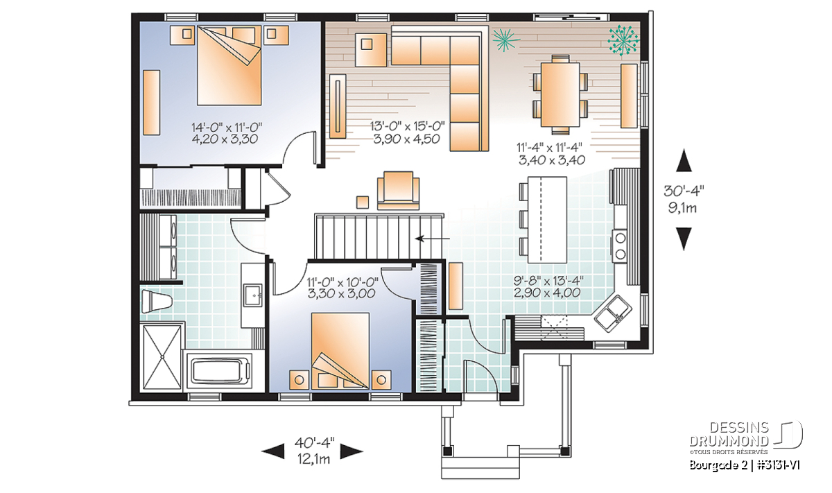 | Largeur | 40'4" | Profondeur | 30'4" |