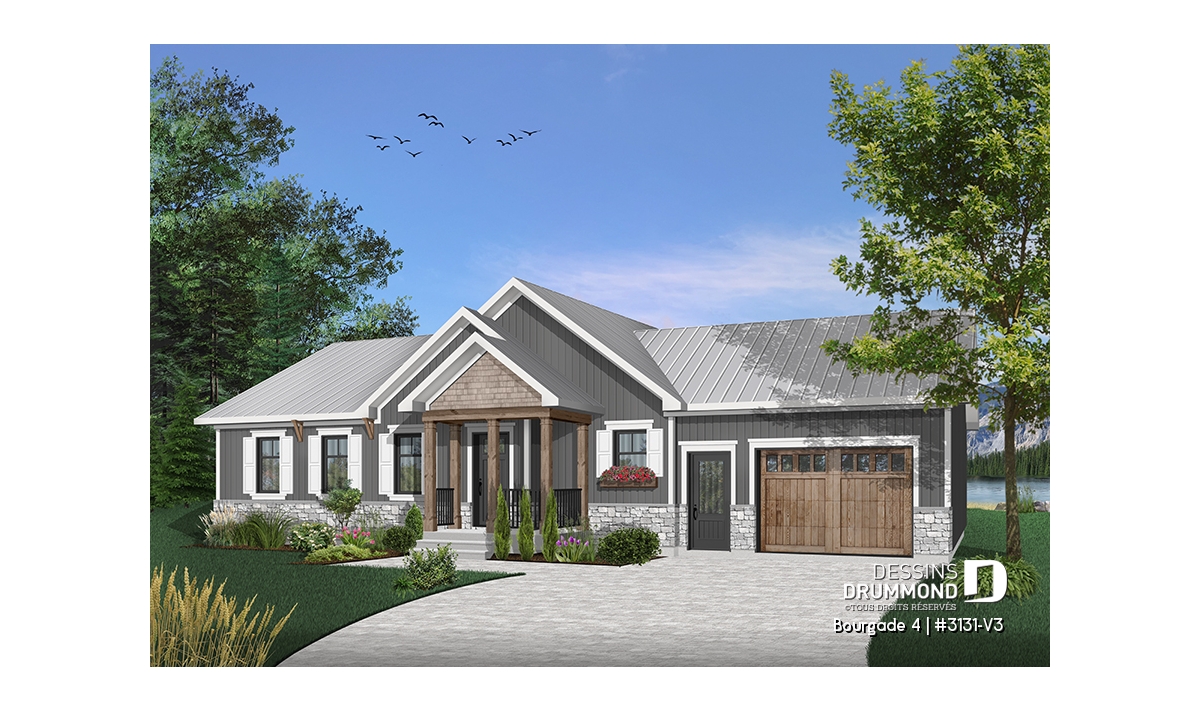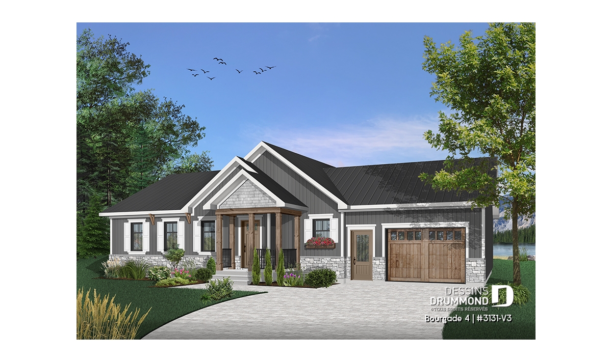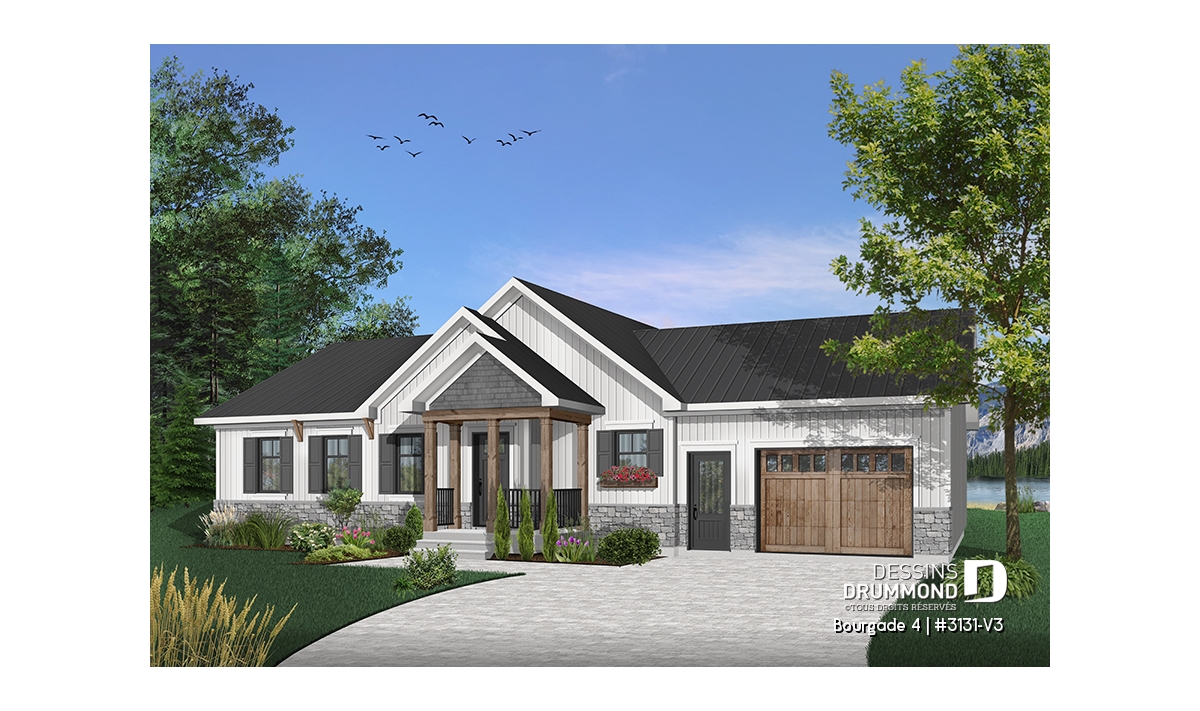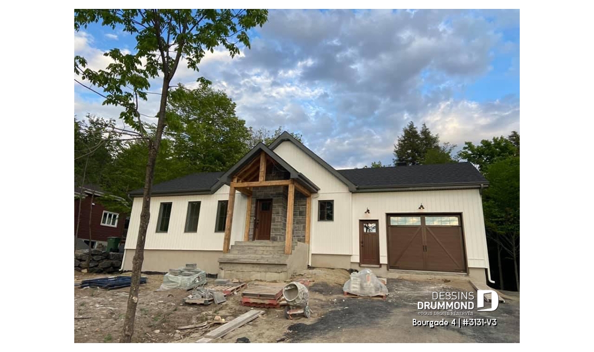 Maison de style moderne rustique offrant beaucoup de commodités et un garage.
