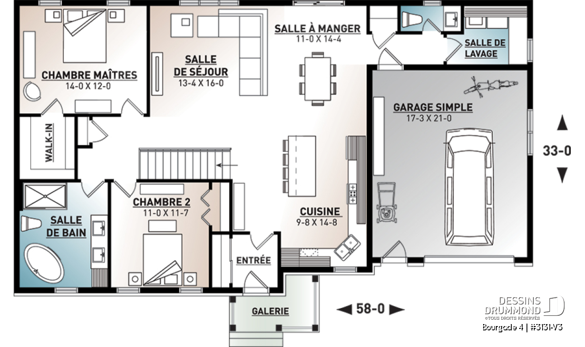 Salle de lavage au rez-de-chaussée, Ilôt, Aire ouverte, Walk-in ch. maîtres, Vestiaire, Bain et douche séparés, Lavabo double, Garage spacieux