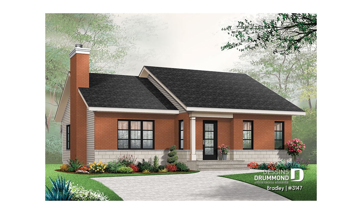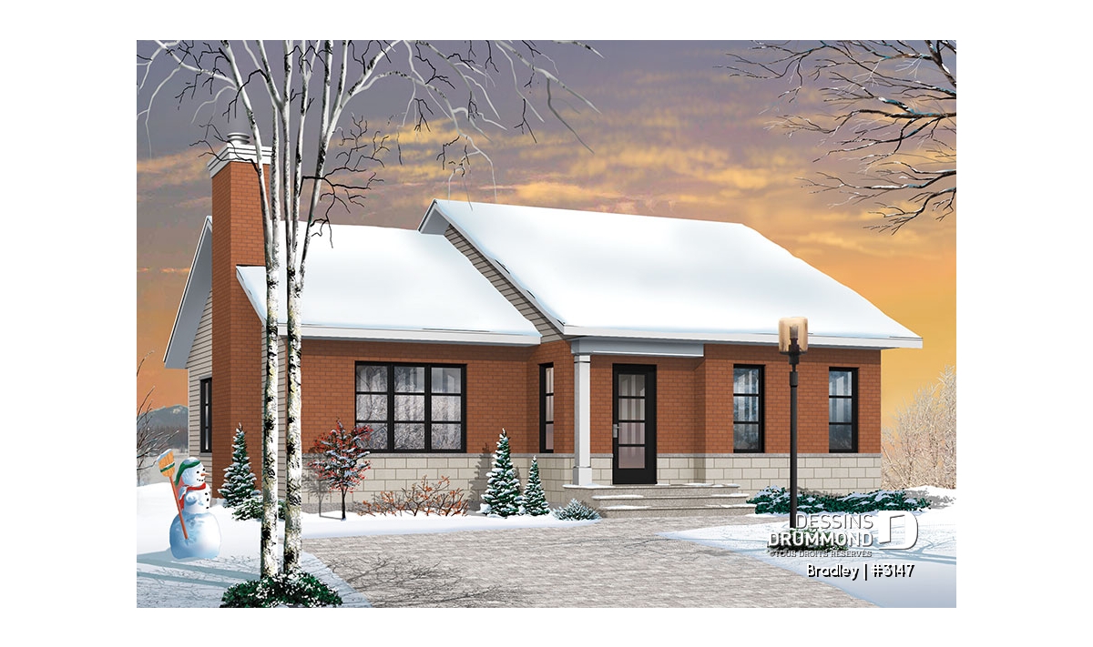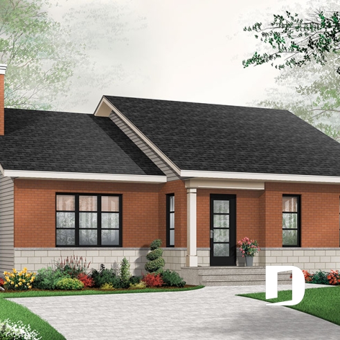 Afin de rencontrer les attentes d’une clientèle hésitante à se construire une maison de véritable style contemporain, Dessins Drummond suggère ici un plan de plain-pied d’approche contemporaine classique.
