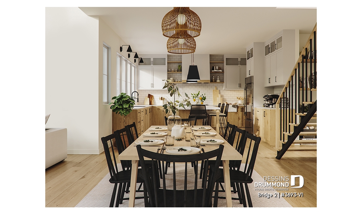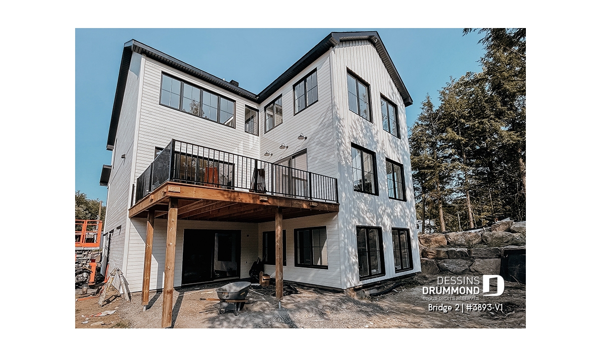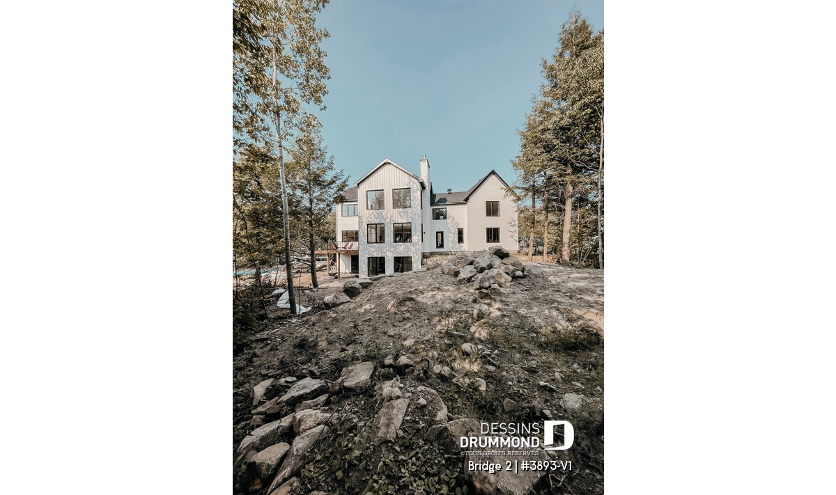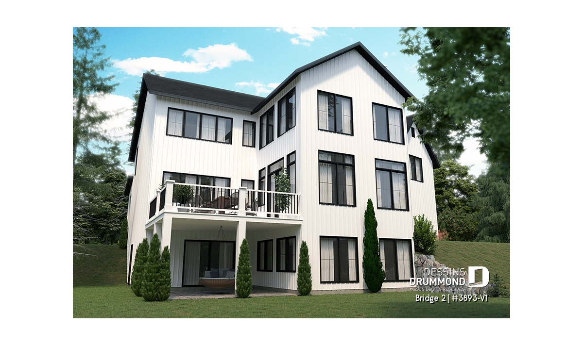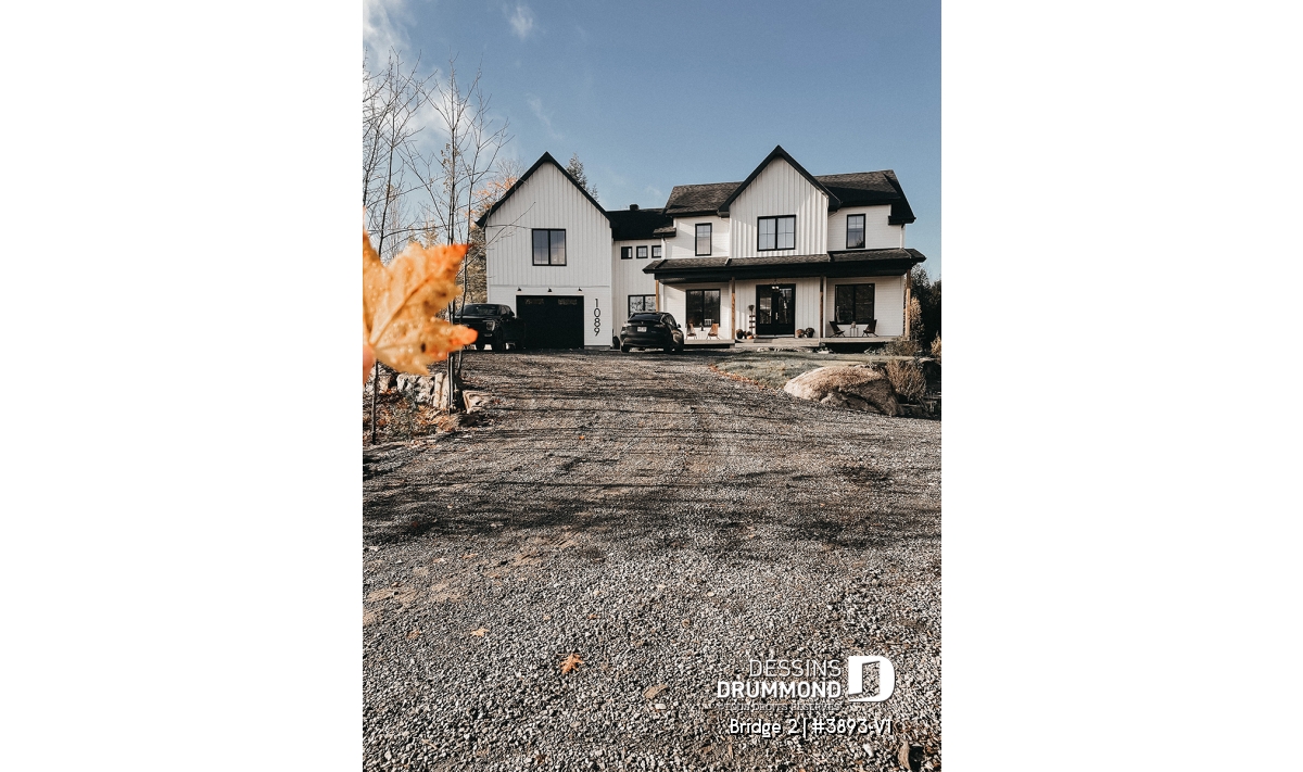 Découvrez le superbe plan de maison de style farmhouse BRIDGE 2 (#3893-V1) avec garage, proposant un confortable 3313 pi.carré de surface aménagée, en plus d'un sous-sol non fini de type rez-de-jardin, additionnant au besoin, 1435 pi.ca. à aménager.