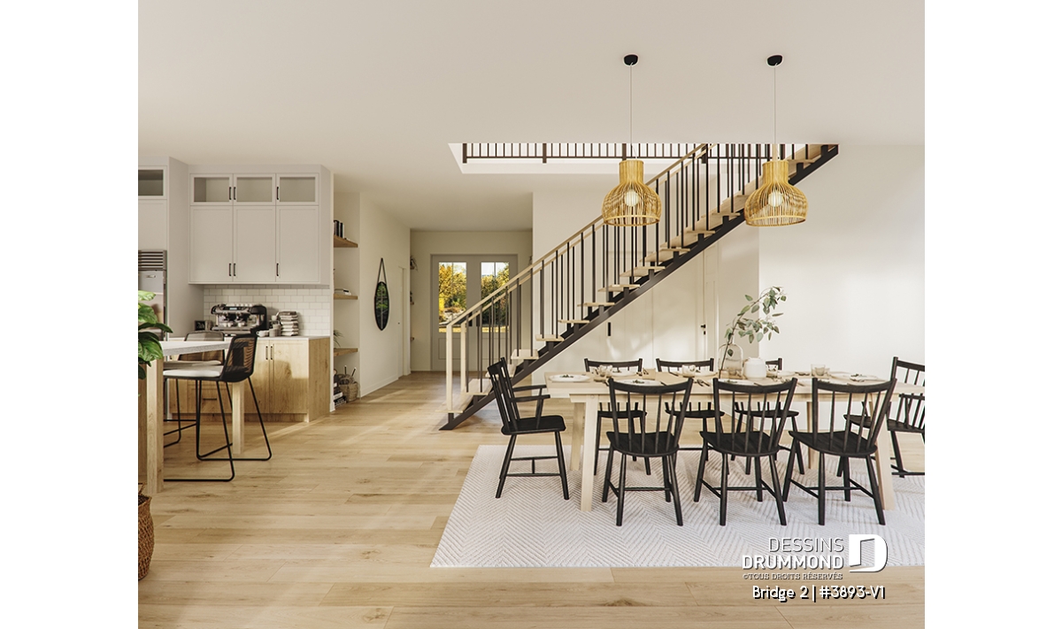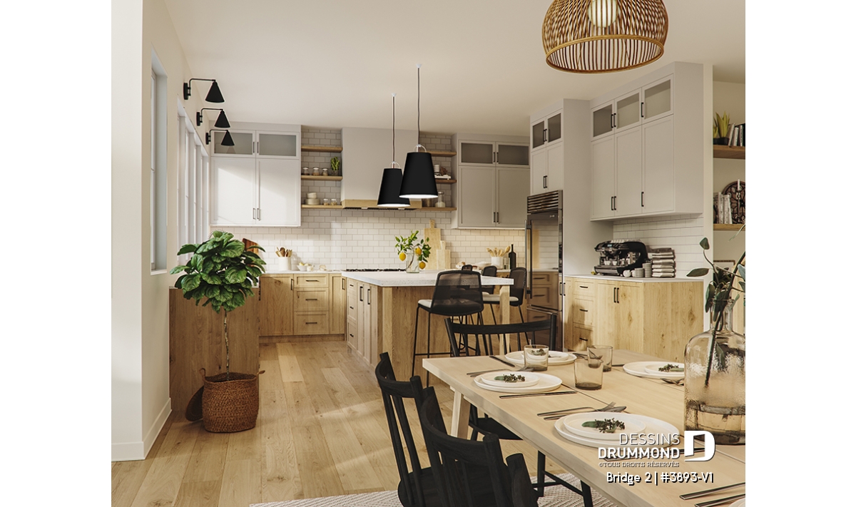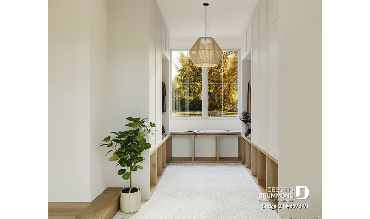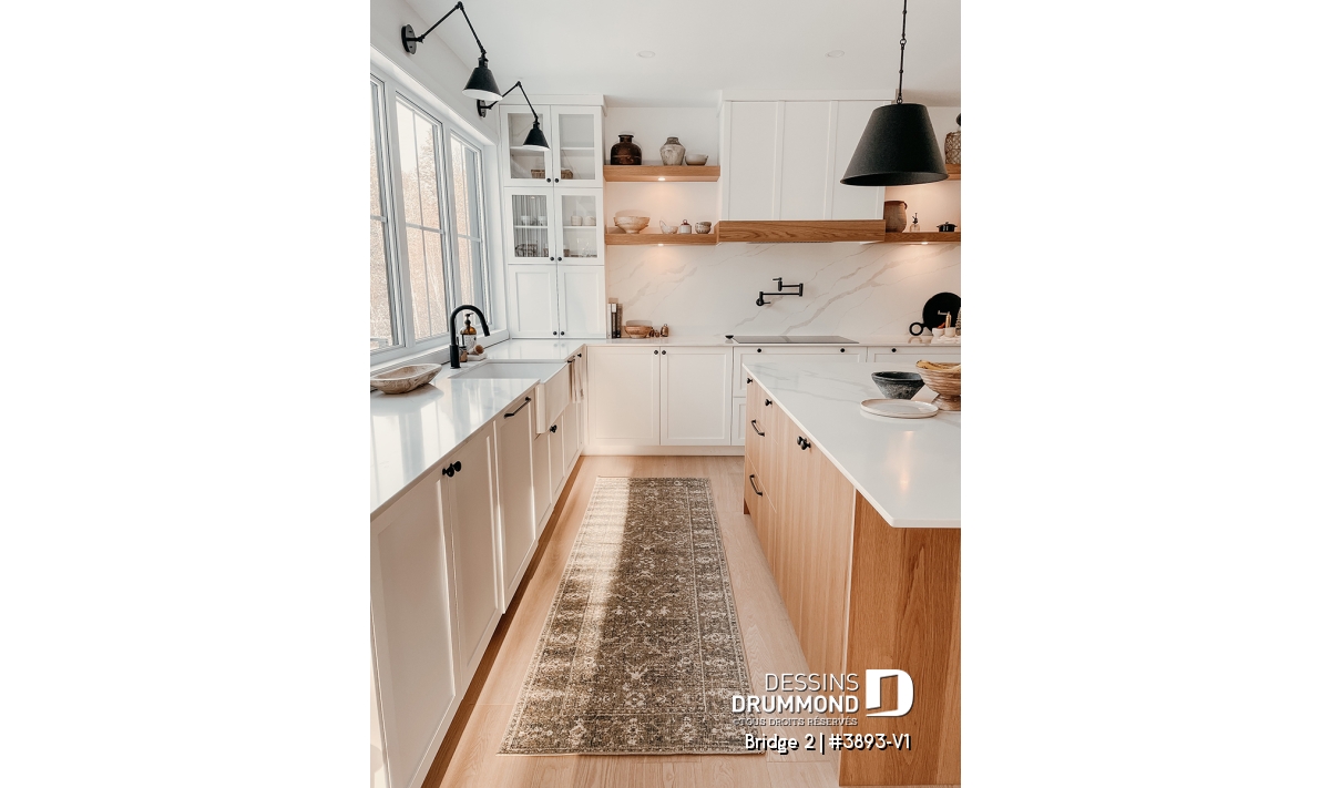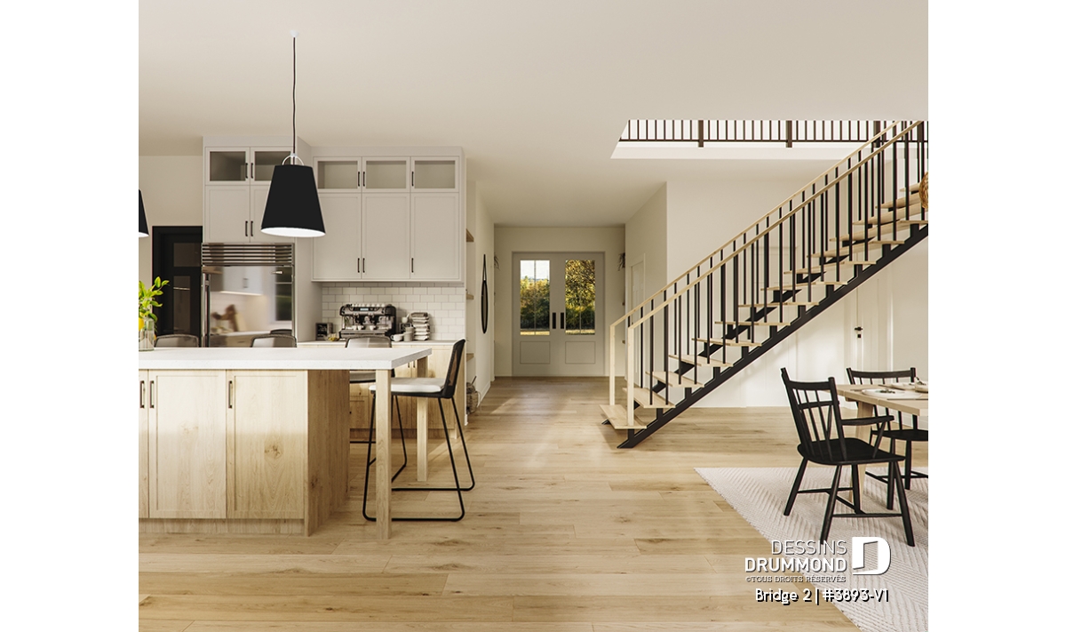 Découvrez le superbe plan de maison de style farmhouse BRIDGE 2 (#3893-V1) avec garage, proposant un confortable 3313 pi.carré de surface aménagée, en plus d'un sous-sol non fini de type rez-de-jardin, additionnant au besoin, 1435 pi.ca. à aménager.