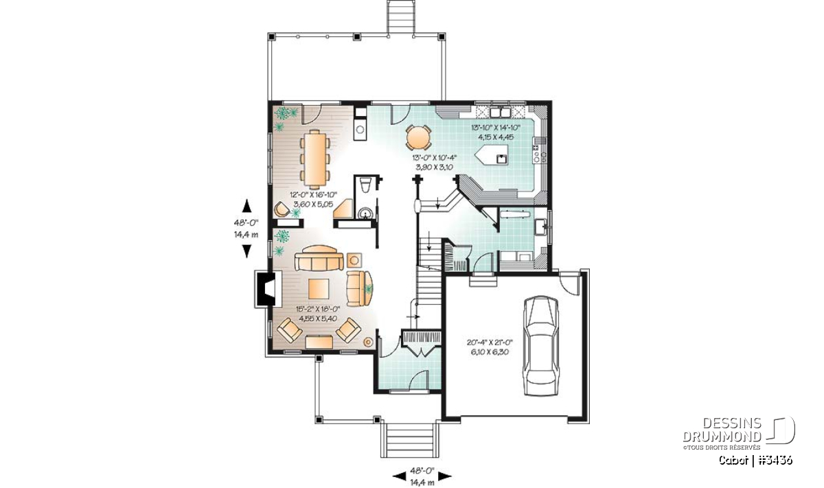 À l’intérieur, on apprécie d’abord au rez-de-chaussée un plafond à 9 pieds, un vestibule avec garde-robe adéquate, une salle de séjour et une salle à manger bien éclairées et de format plus qu’appréciable, une vaste cuisine et un espace dînette partageant un foyer avec la salle à manger. On remarque de plus, une buanderie indépendante et un accès au garage passablement bien dissimulé.