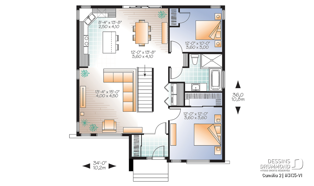 | Largeur | 34'0" | Profondeur | 36'0" |