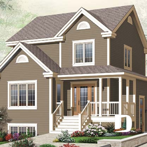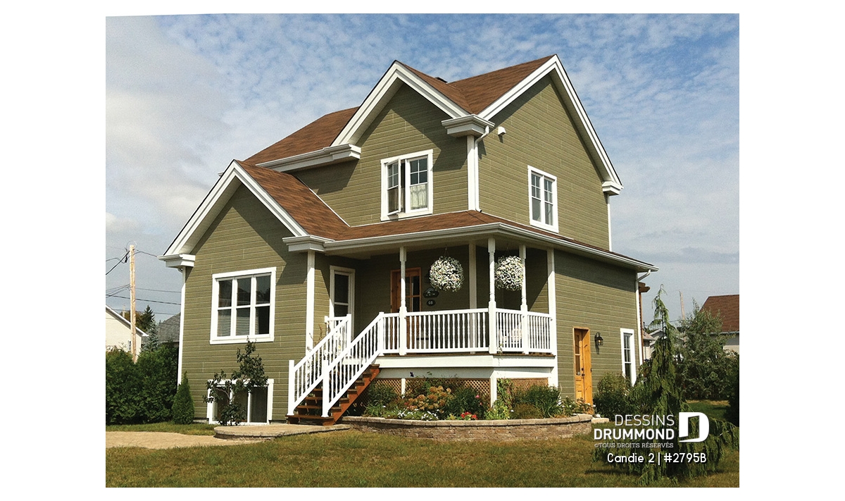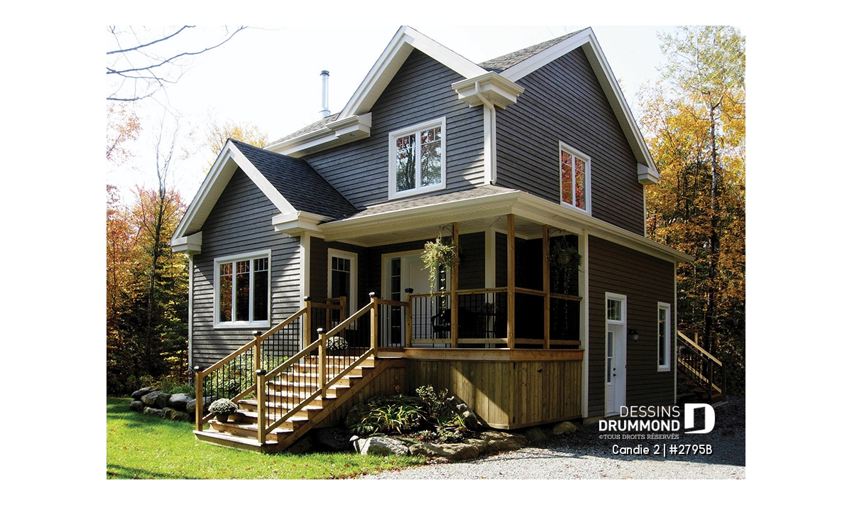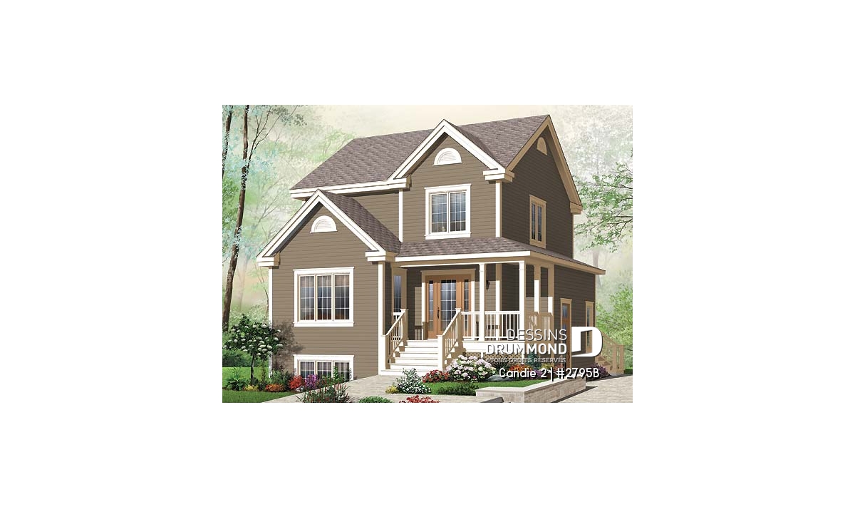 Ça se poursuit cette semaine avec une autre proposition de cottage incluant un « bachelor » en demi sous-sol. Celui-ci, réalisé à partir du très populaire modèle 2735 que vous pouvez voir sur le site internet dessinsdrummond.com, se veut fort attrayant avec sa volumétrie, sa galerie, ses ouvertures ainsi que par les teintes fort chaleureuses qu’il propose.