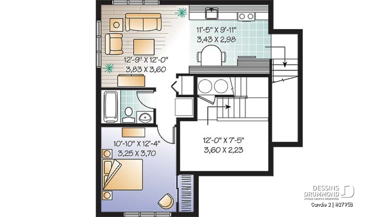 Une fois de plus, on remarque une entrée latérale permettant d’accéder au « bachelor »; entrée dont l’escalier de seulement six marches facilitera l’accès à une plus grande diversité de locataires. On pense, entre autre, à des gens plus âgés qui pourraient fort bien s’accommoder d’un tel escalier.