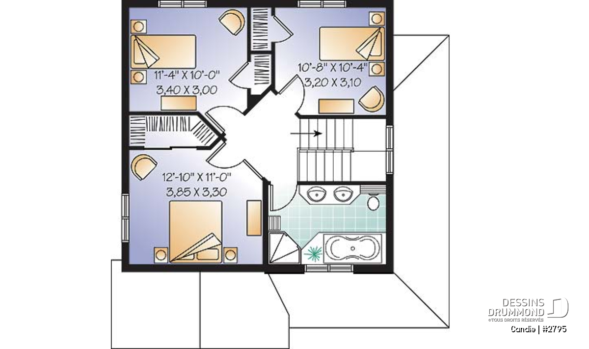 Pièces de beau format avec minimisation des corridors.