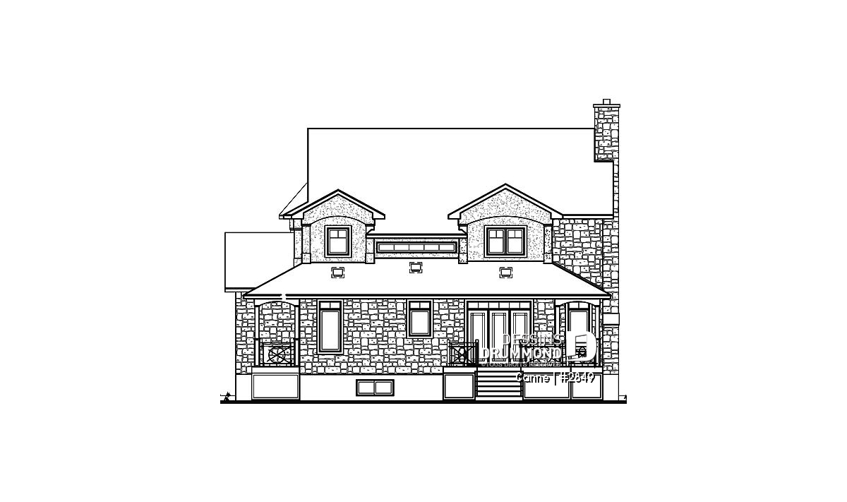 Vue avant - MODÈLE DE BASE - Salle familiale avec foyer, bureau à domicile, grande cuisine, terrasse - Canne