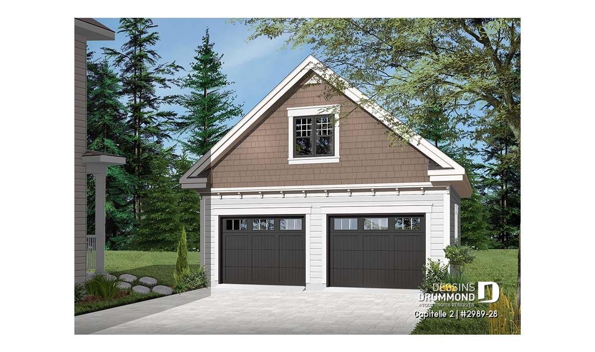Garage double de style craftsman offrant espace boni aménageable