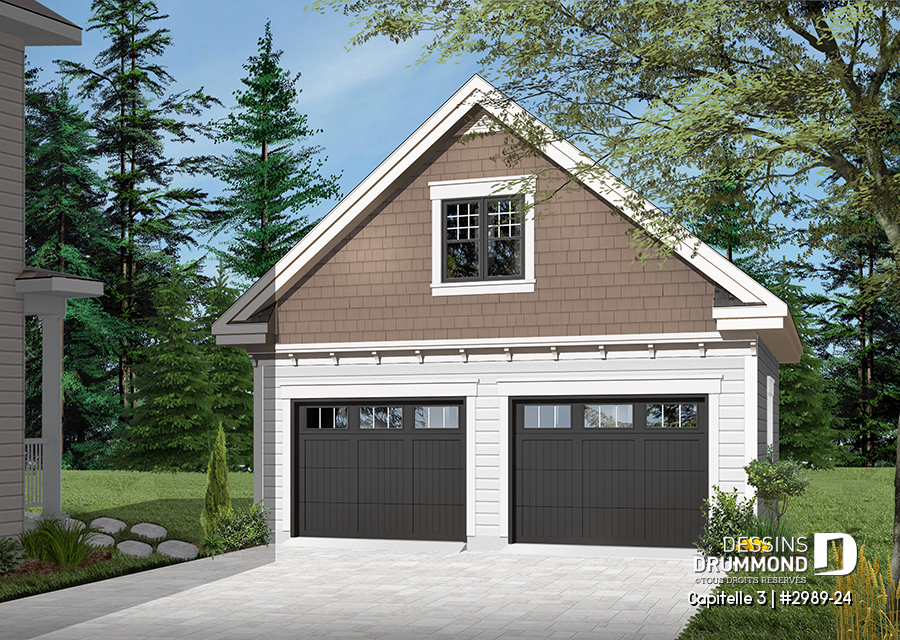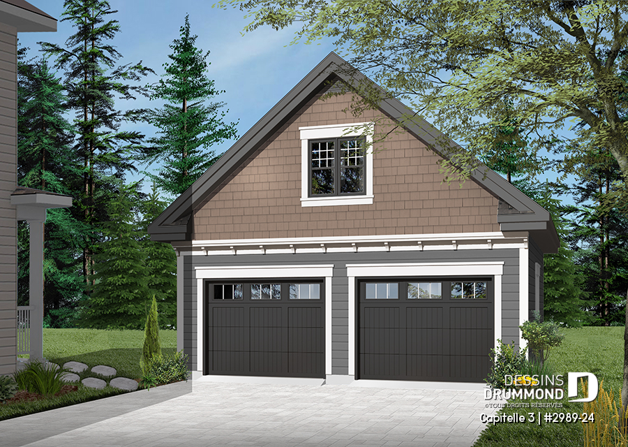 Modèle de garage 2 étages avec loft multifonction : rangement, atelier ou détente!