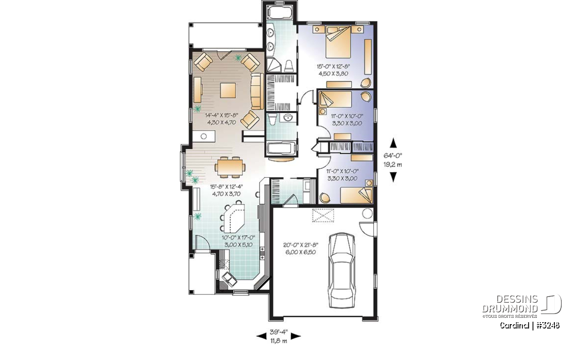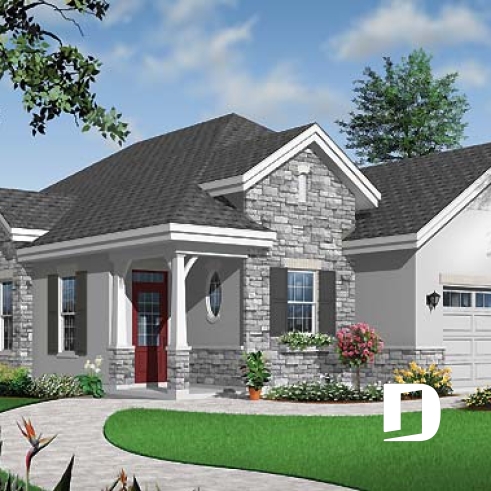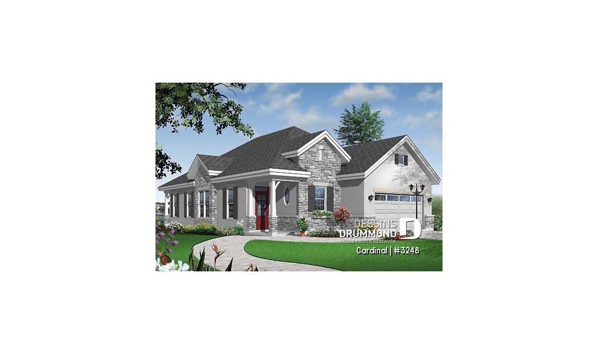 Superbe plan de maison craftsman 3 chambres avec garage.