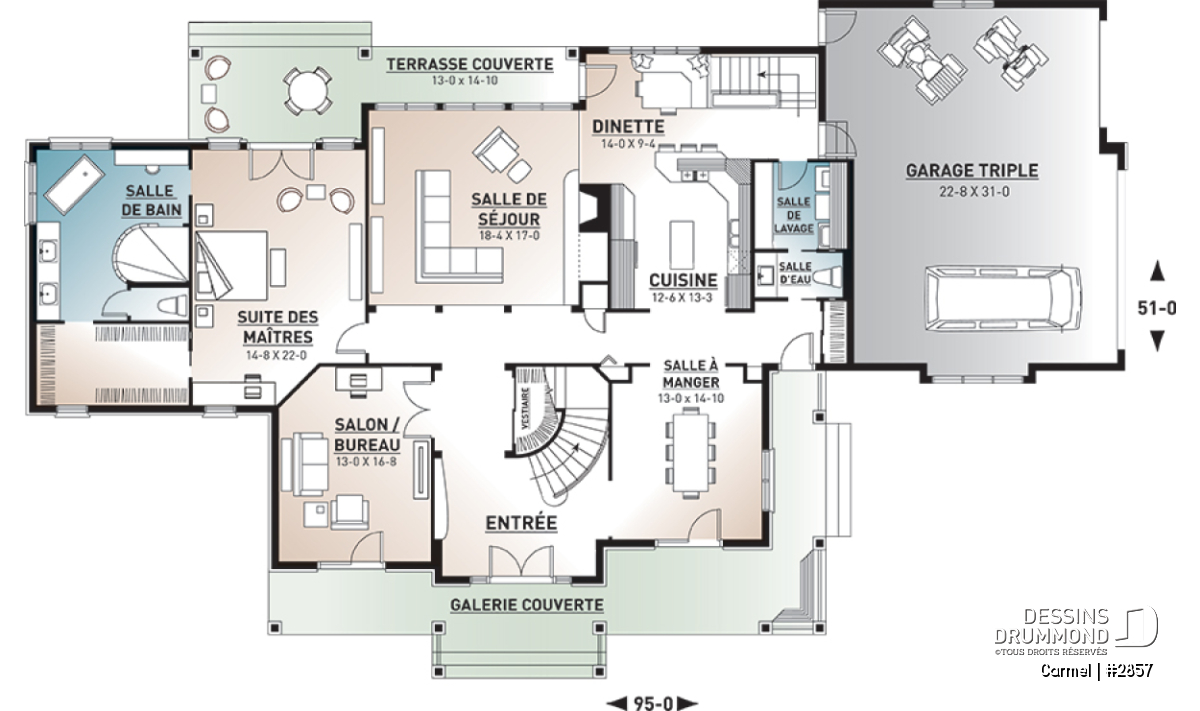 Largeur 95'0" Profondeur 51'0"