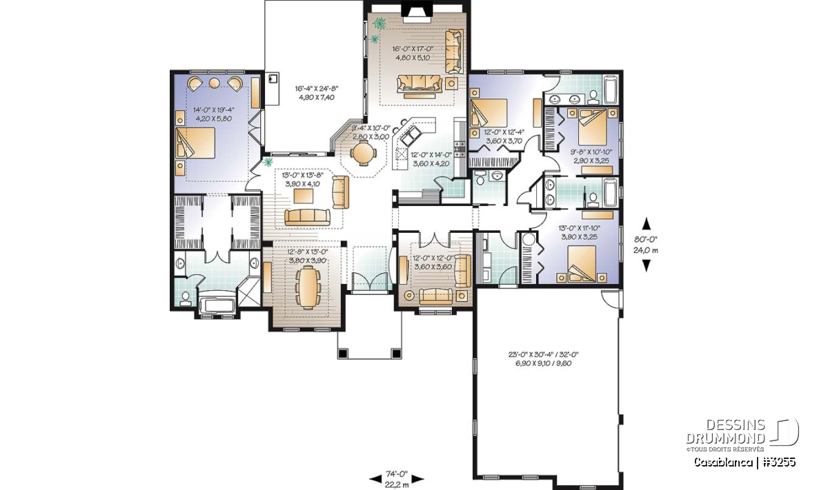 Foyer, Ilôt, Terrasse abritée, Suite d'invités, Garde-manger, Salle de lavage au rez-de-chaussée, Bureau / Salle étude, Garage latéral, Suite des maîtres au rdc, Meuble(s) encastré(s), Dinette / Coin déjeuner, Salle à manger formel, Chambres séparées, Bain et douche séparés, Lavabo double, Walk-in double ch. maîtres, Salle de bain communicante