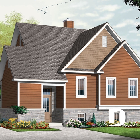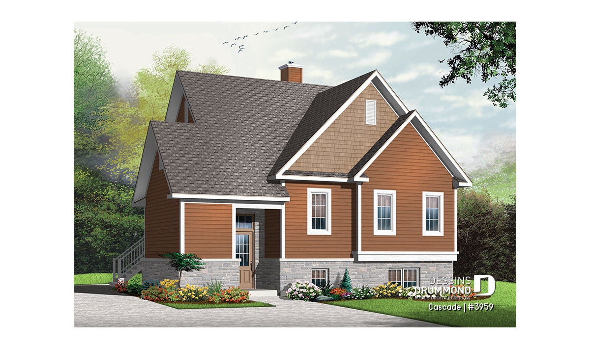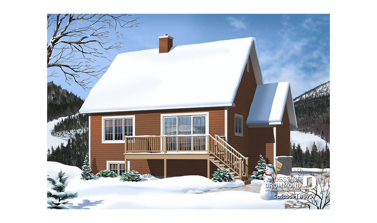 Je crois qu’on peut véritablement parler d’une approche abordable pour un chalet de ski proposant 1 à 4 chambres, un secteur activités abondamment fenêtré avec foyer et un coup d’œil extérieur tout à fait dans le ton de ces chalets d’hiver. Le truc pour l’obtention d’un tel prix, l’aménagement d’un sous-sol en partie hors terre et pour l’obtention de fenêtres adéquates et conformes. Entrons donc sans plus tarder !