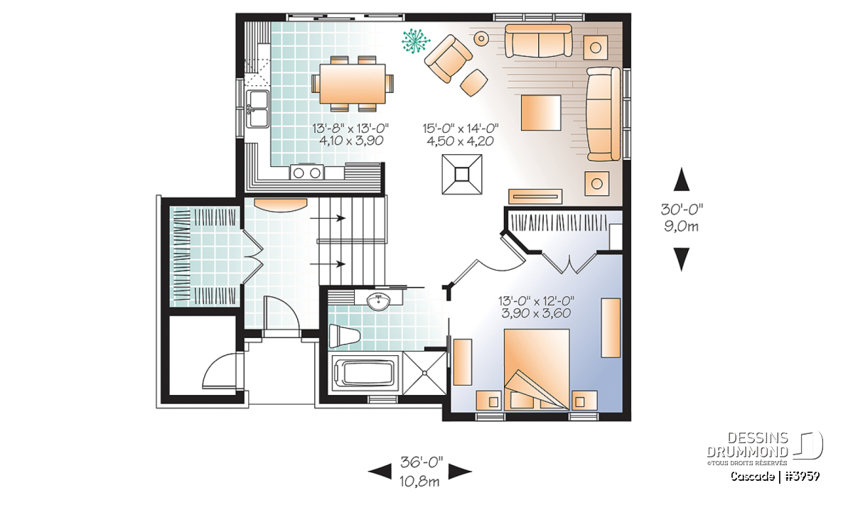 Foyer, Vestiaire, Bain et douche séparés, Aire ouverte