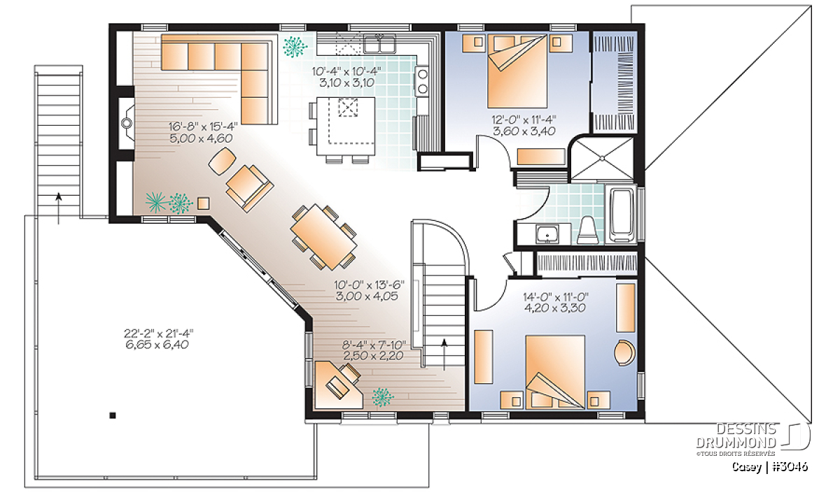 Eh oui, il y a toujours de la demande pour ce type de construction et Dessins Drummond se fait un plaisir de vous offrir ce modèle 3046 comme solution attrayante pour tous ceux à la recherche d’un plan bi-générations fonctionnel et respectant l’intimité de chacun des occupants.