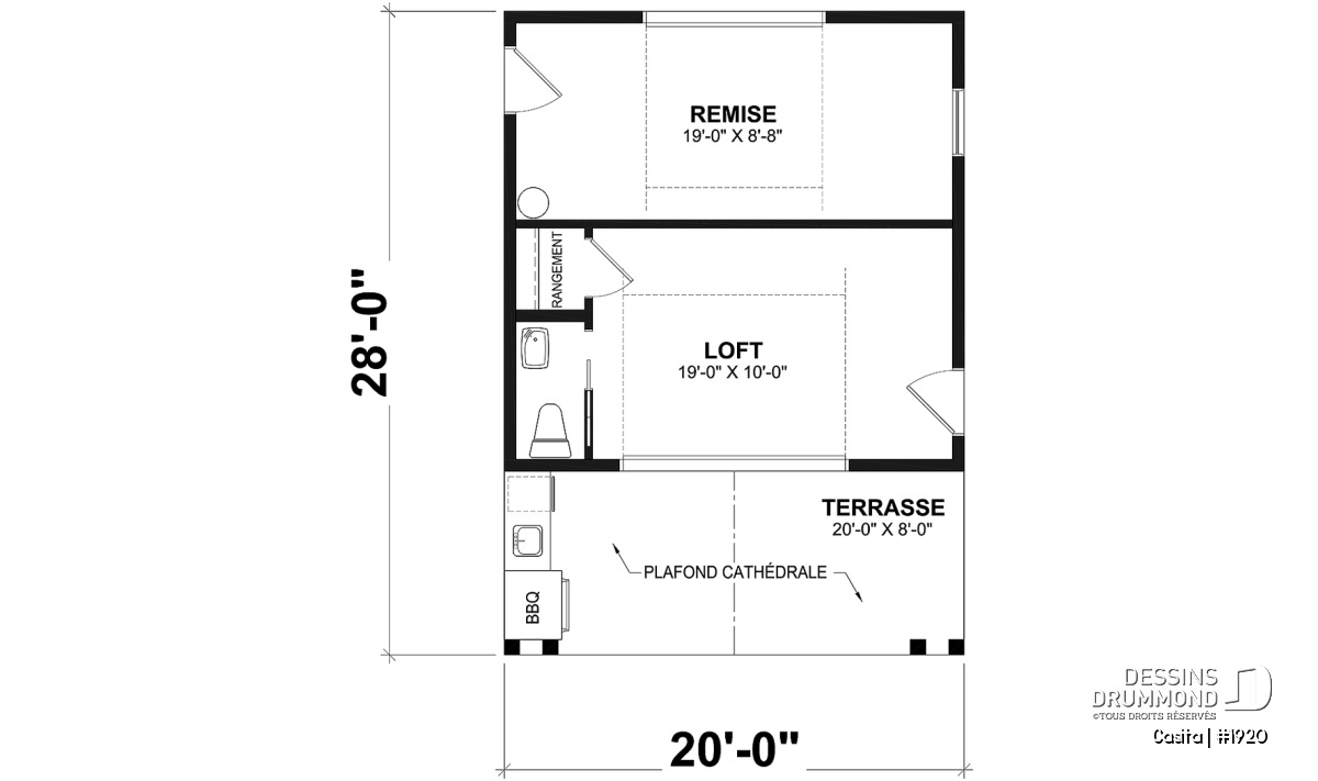 | Largeur | 20'0" | Profondeur | 28'0" |