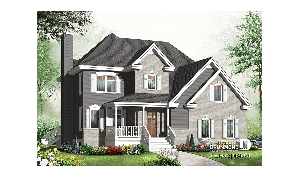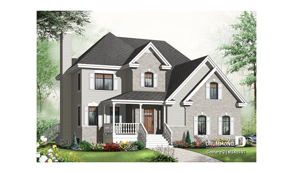 Le garage double, doté de portes positionnées sur le côté droit, s’avère particulièrement pratique pour les terrains en coin, facilitant les manœuvres et maximisant l’esthétique de la façade.